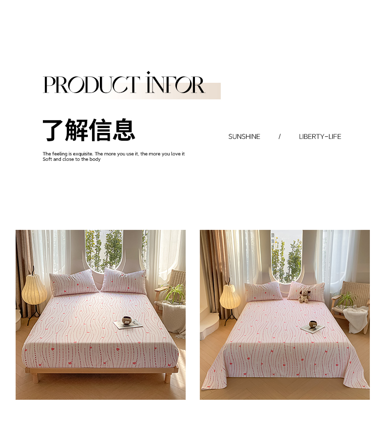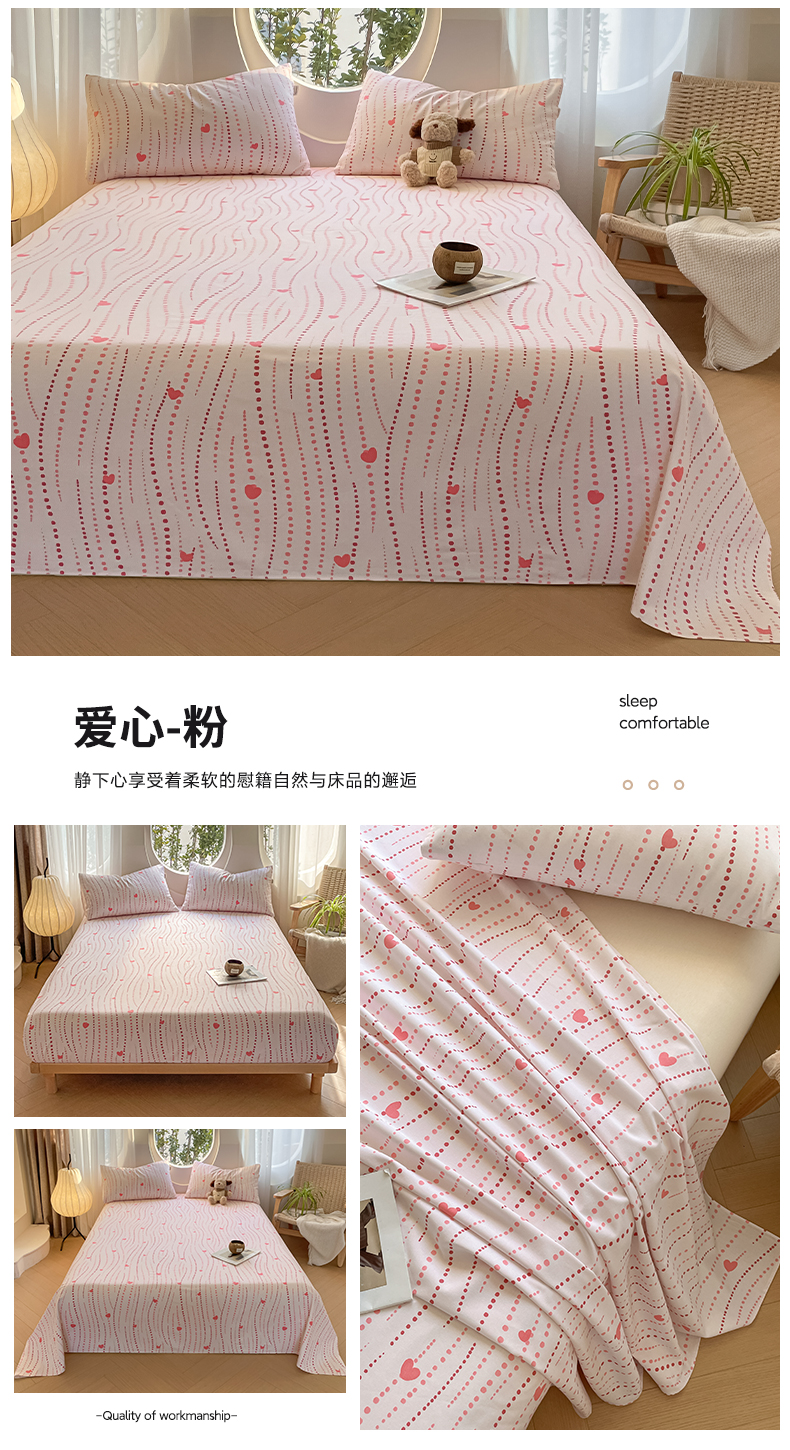 商品名称:雅居纺家纺 2025春夏新款全棉纯棉简约老粗布-单床单 床单单件凉席席 爱心-浅粉