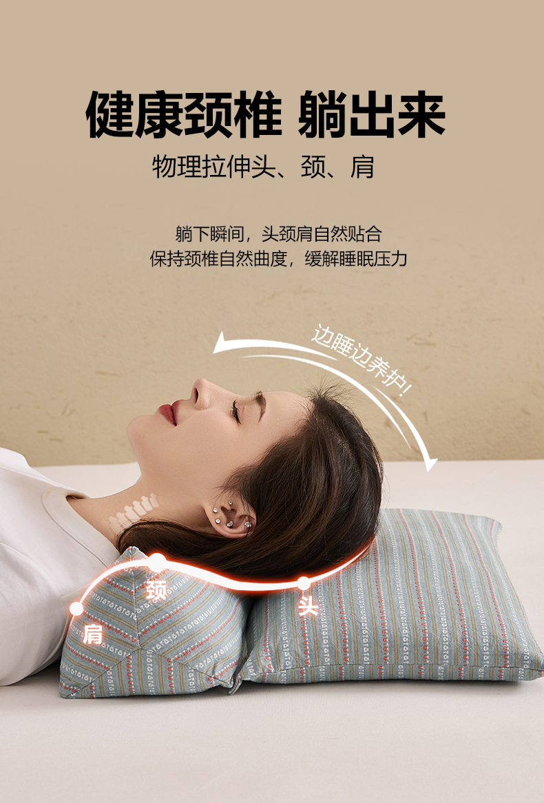 (总)乐可 2025新款分区两用牵引枕全棉双向枕 枕头枕芯,分区两用牵引枕