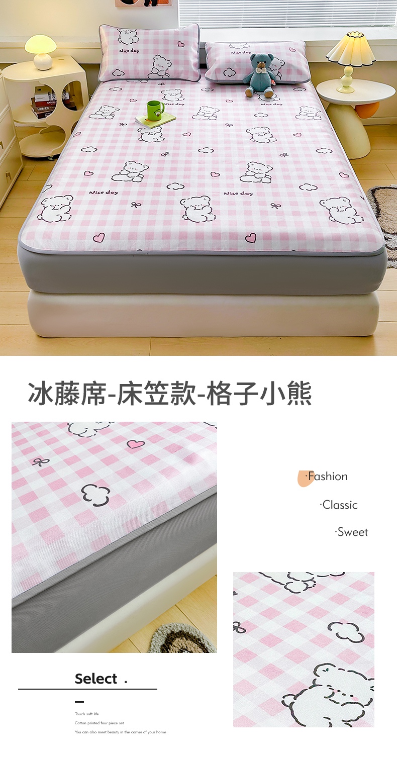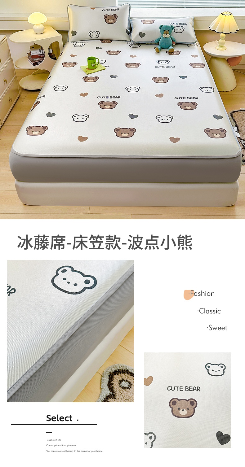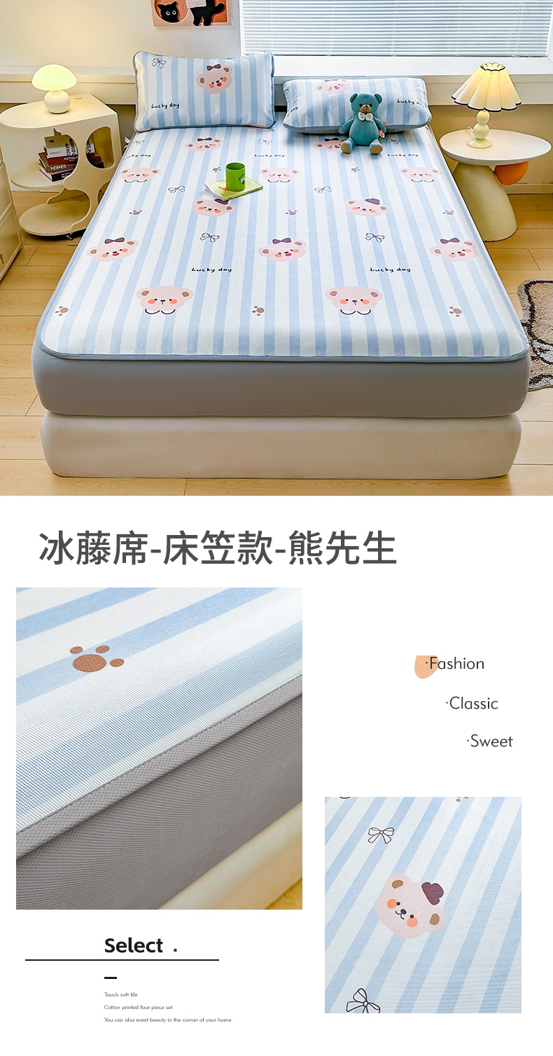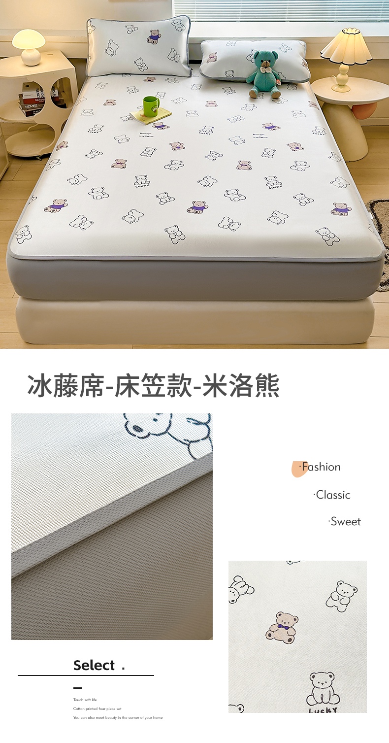 当前位置: 91家纺网 > 商品网购 > 床上用品 > 凉席 > 冰丝席 > 雯豆家纺 2025夏季新品冰藤印花床笠三件套加厚冰丝软藤席小清新印花床罩单件 冰藤席-床笠款-熊先生