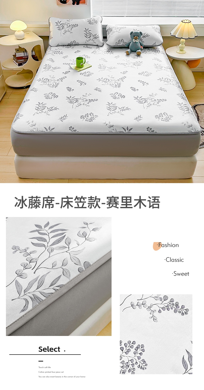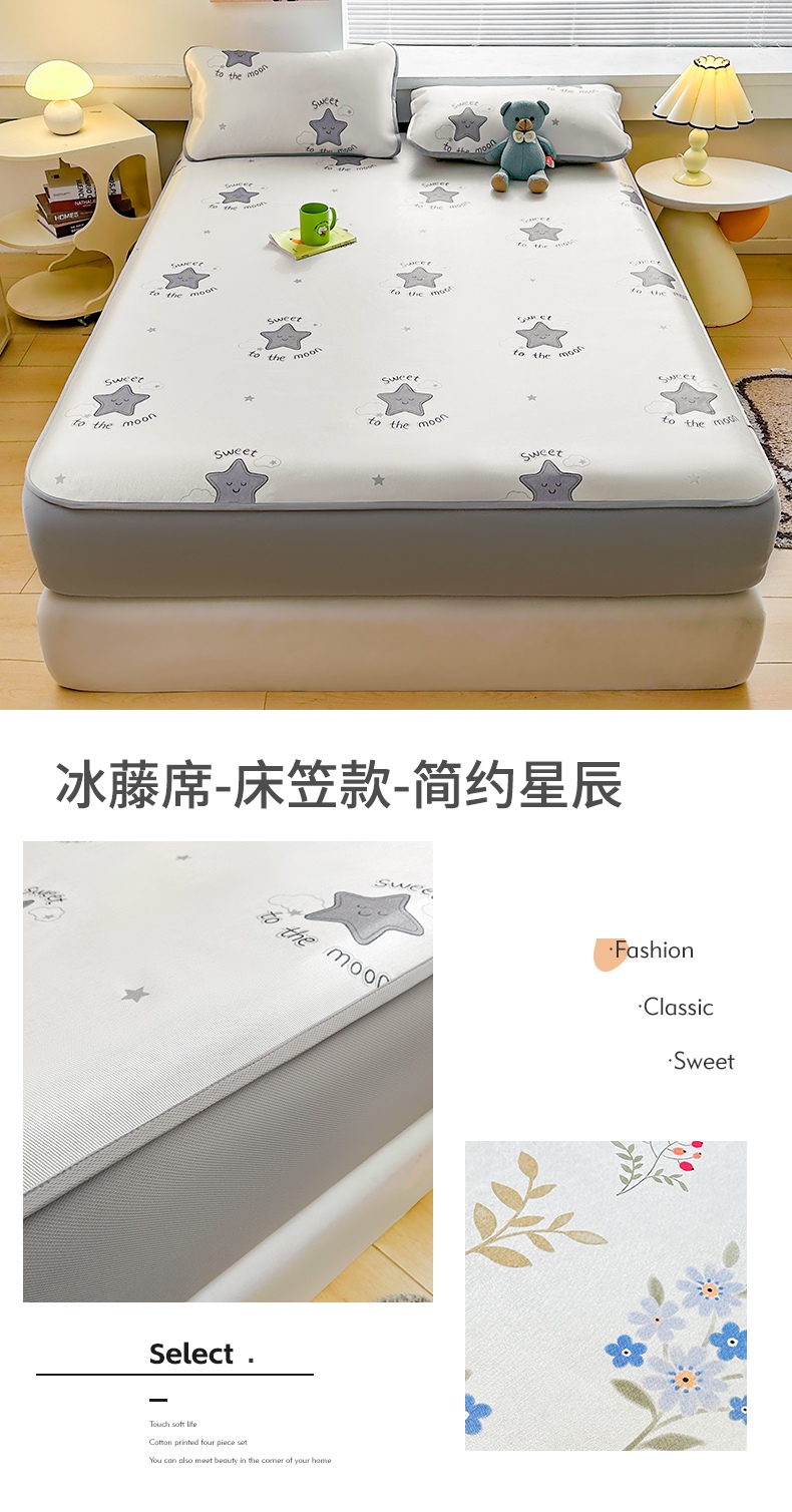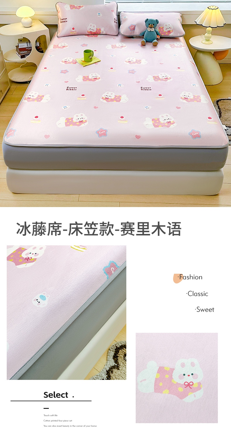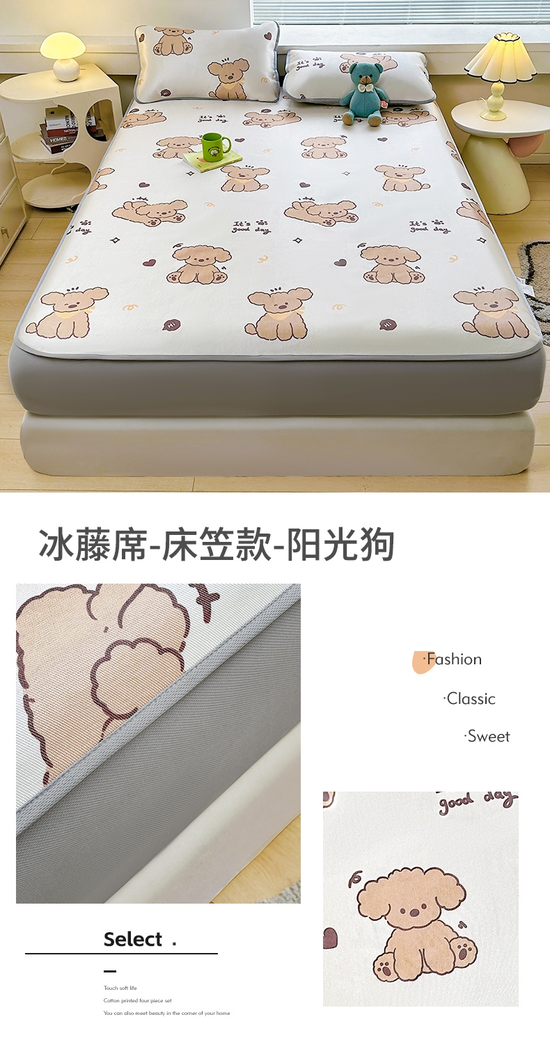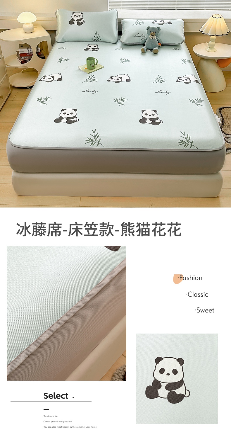 当前位置: 91家纺网 > 商品网购 > 床上用品 > 凉席 > 冰丝席 > 雯豆家纺 2025夏季新品冰藤印花床笠三件套加厚冰丝软藤席小清新印花床罩单件 冰藤席-床笠款-熊先生