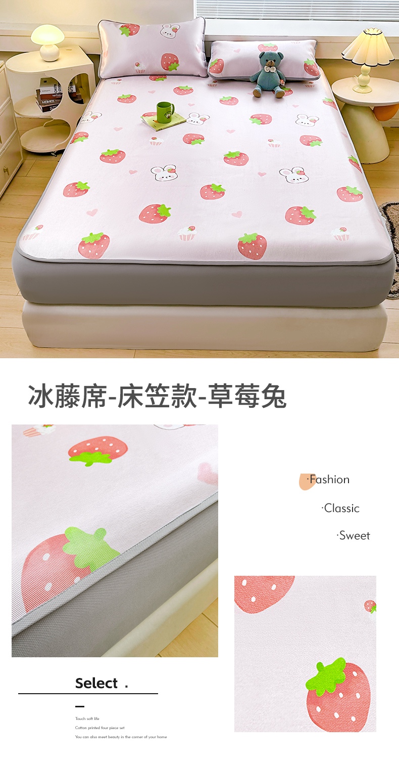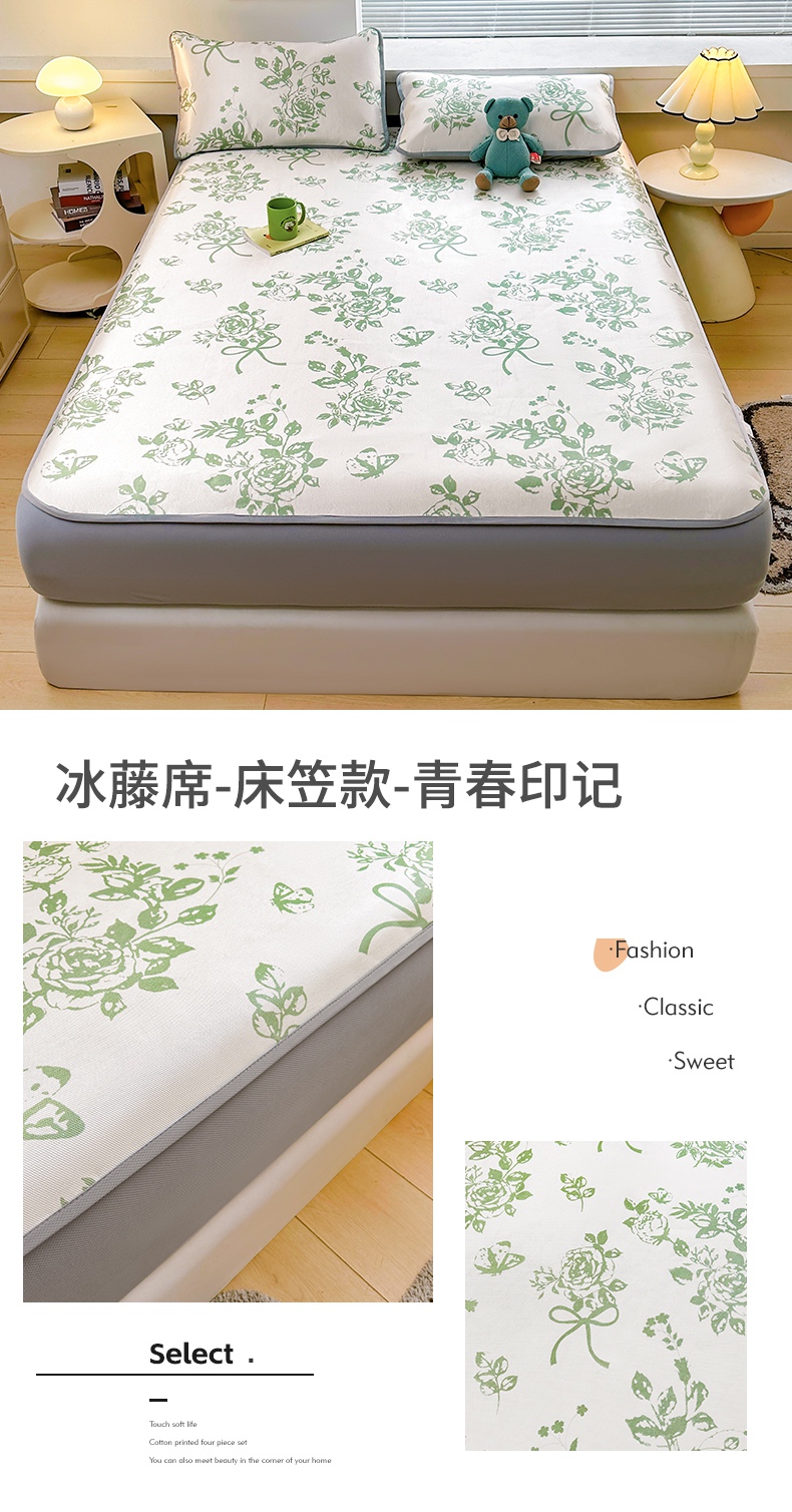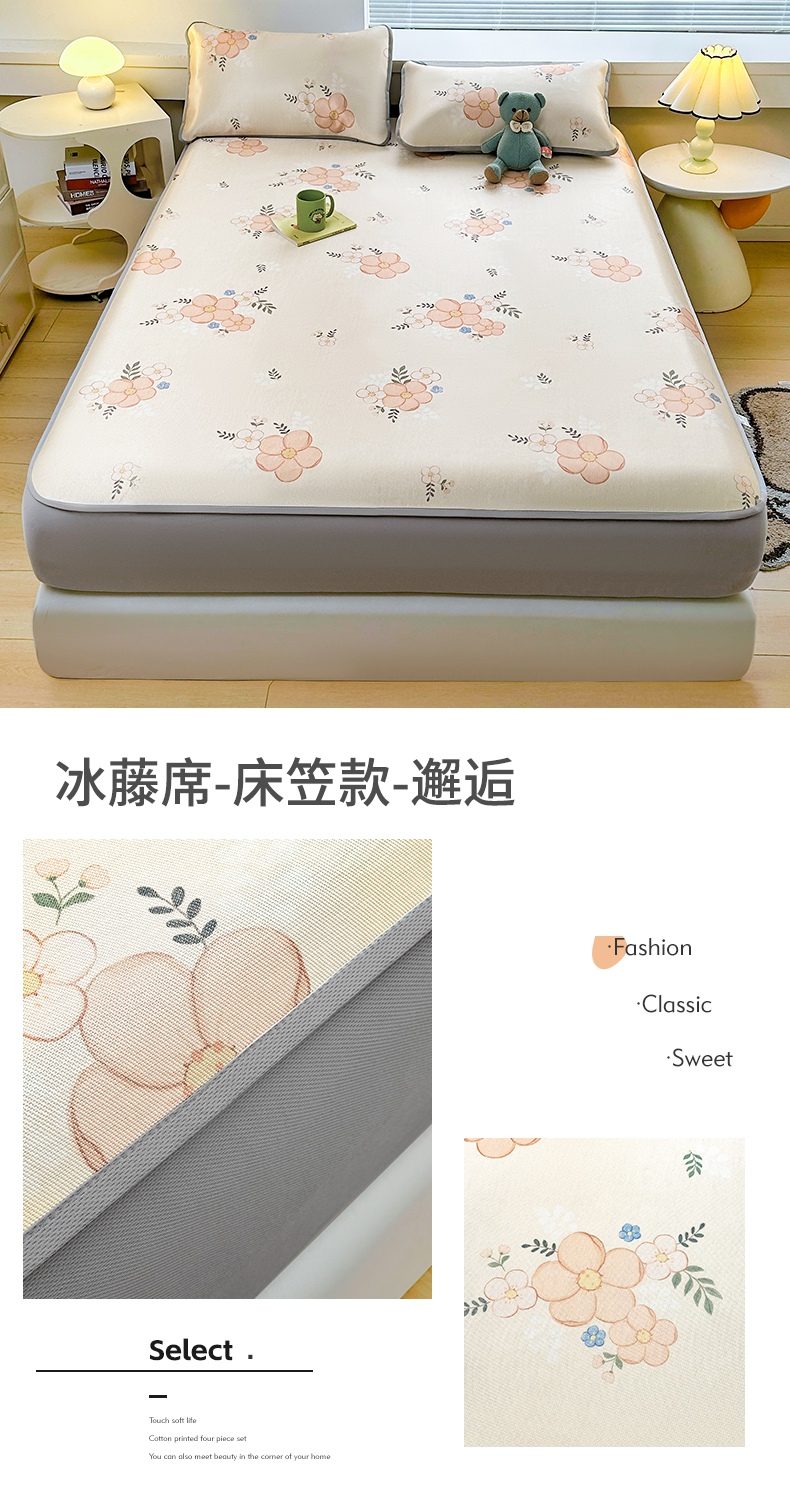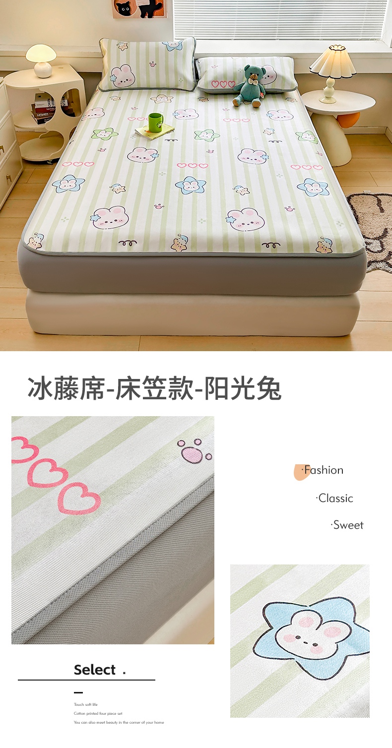 当前位置: 91家纺网 > 商品网购 > 床上用品 > 凉席 > 冰丝席 > 雯豆家纺 2025夏季新品冰藤印花床笠三件套加厚冰丝软藤席小清新印花床罩单件 冰藤席-床笠款-熊先生