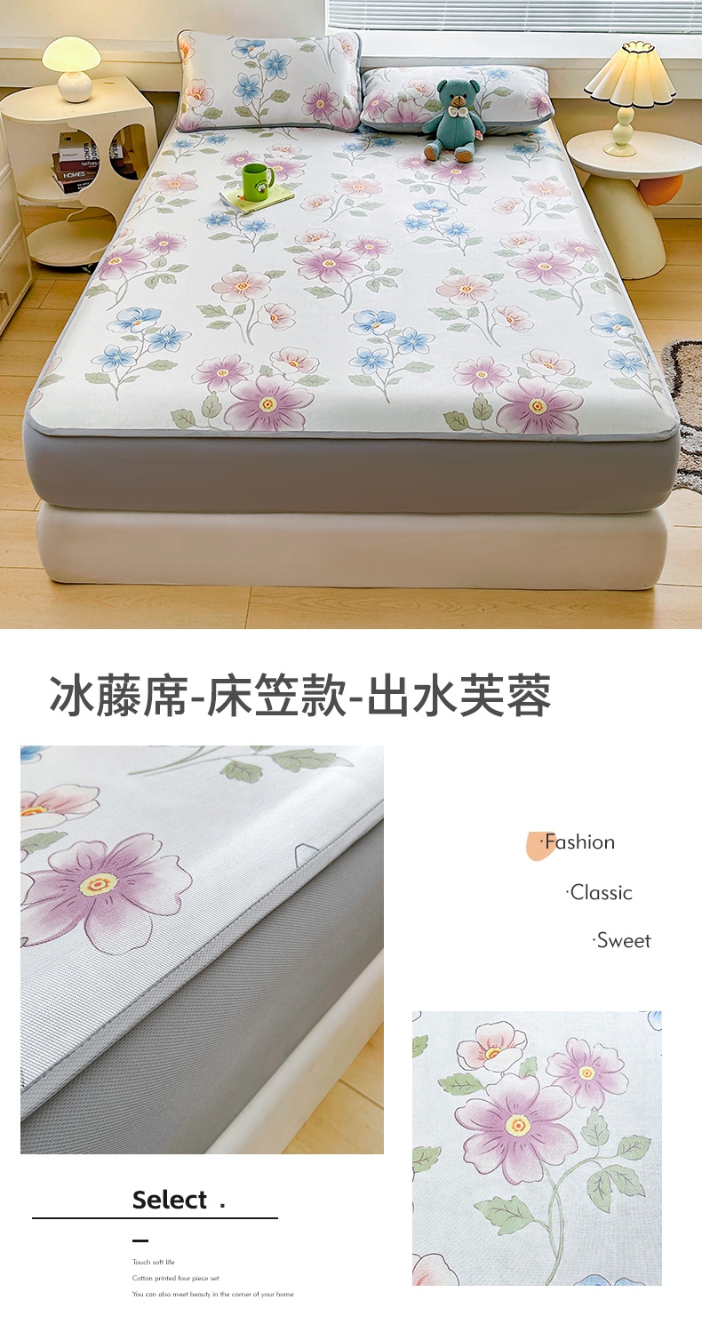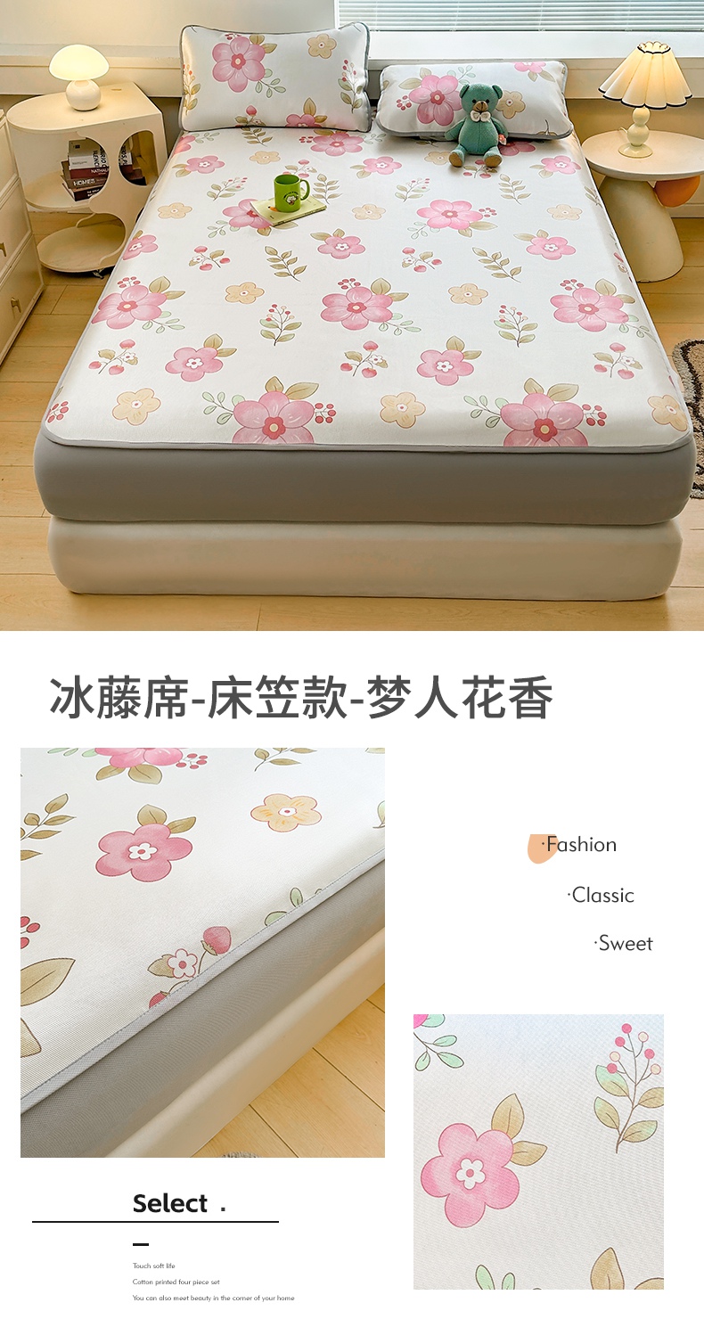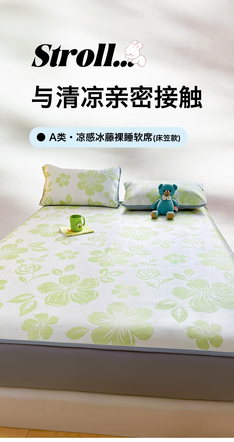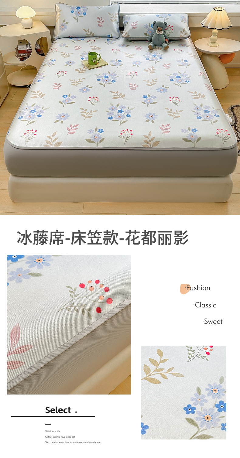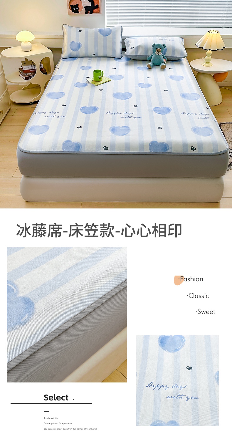 当前位置: 91家纺网 > 商品网购 > 床上用品 > 凉席 > 冰丝席 > 雯豆家纺 2025夏季新品冰藤印花床笠三件套加厚冰丝软藤席小清新印花床罩单件 冰藤席-床笠款-熊先生
