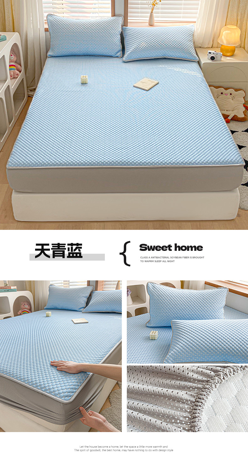商品名称:卡伦家纺2025新款凉感丝凉豆豆凉席床笠系列 天青蓝