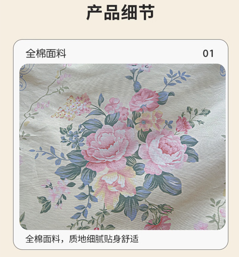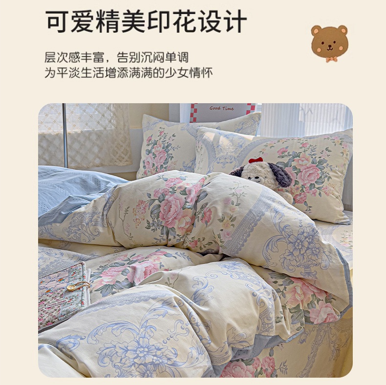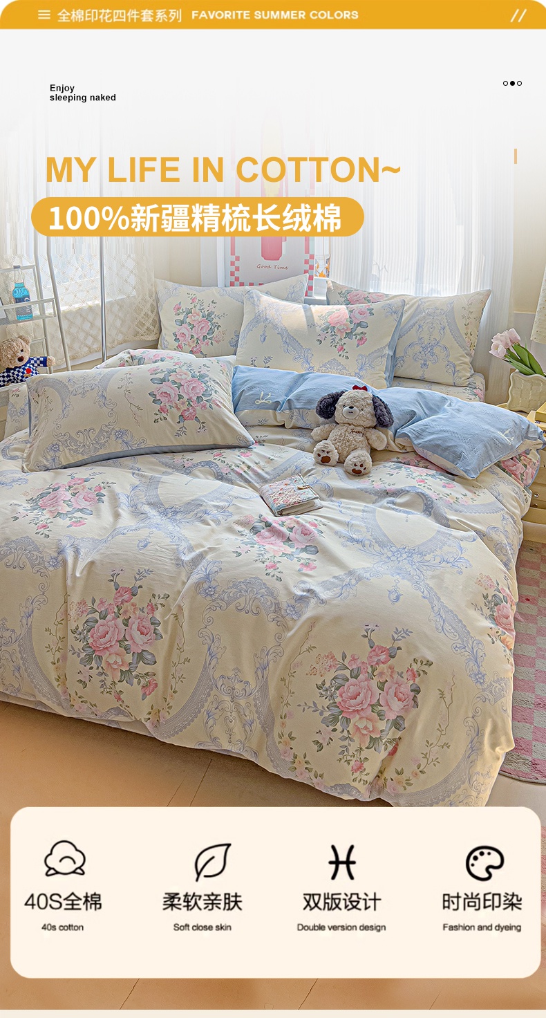 商品名称:棉生活家纺 2025新款ins全棉小清新系列四件套 夏日静香