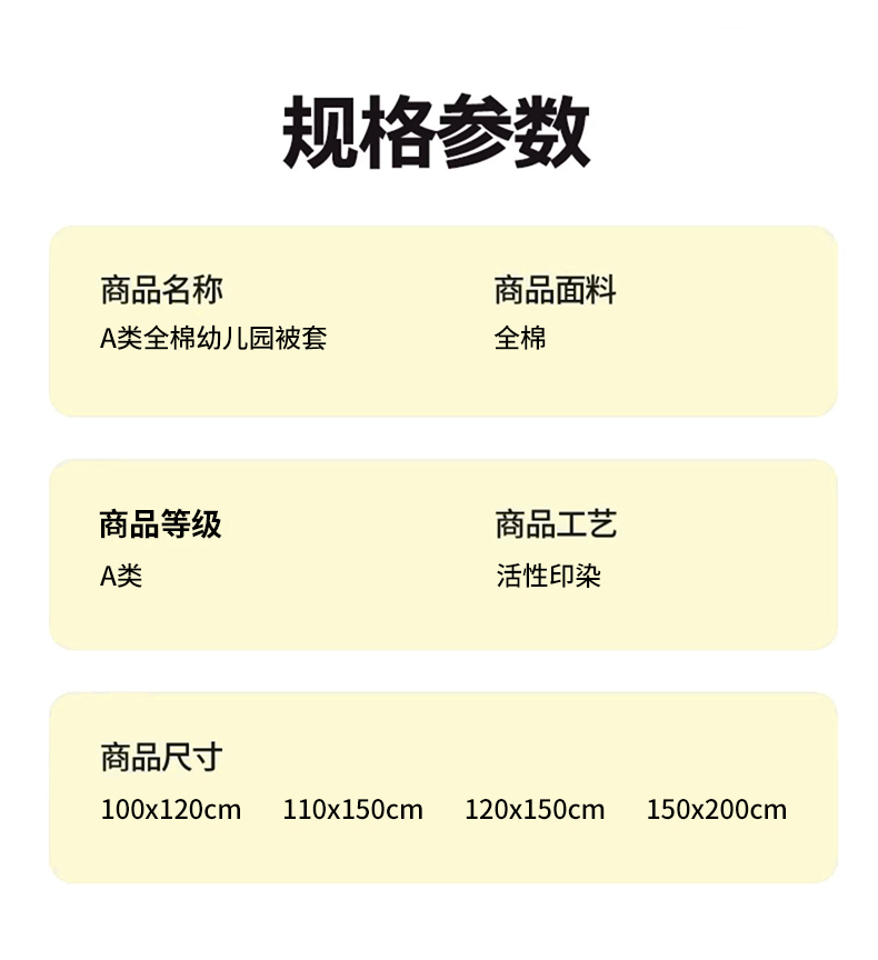 商品名称:(总)良佐生活 2025新款高支高密A类纯棉幼儿园学生儿童被套宝宝小被罩全棉被套