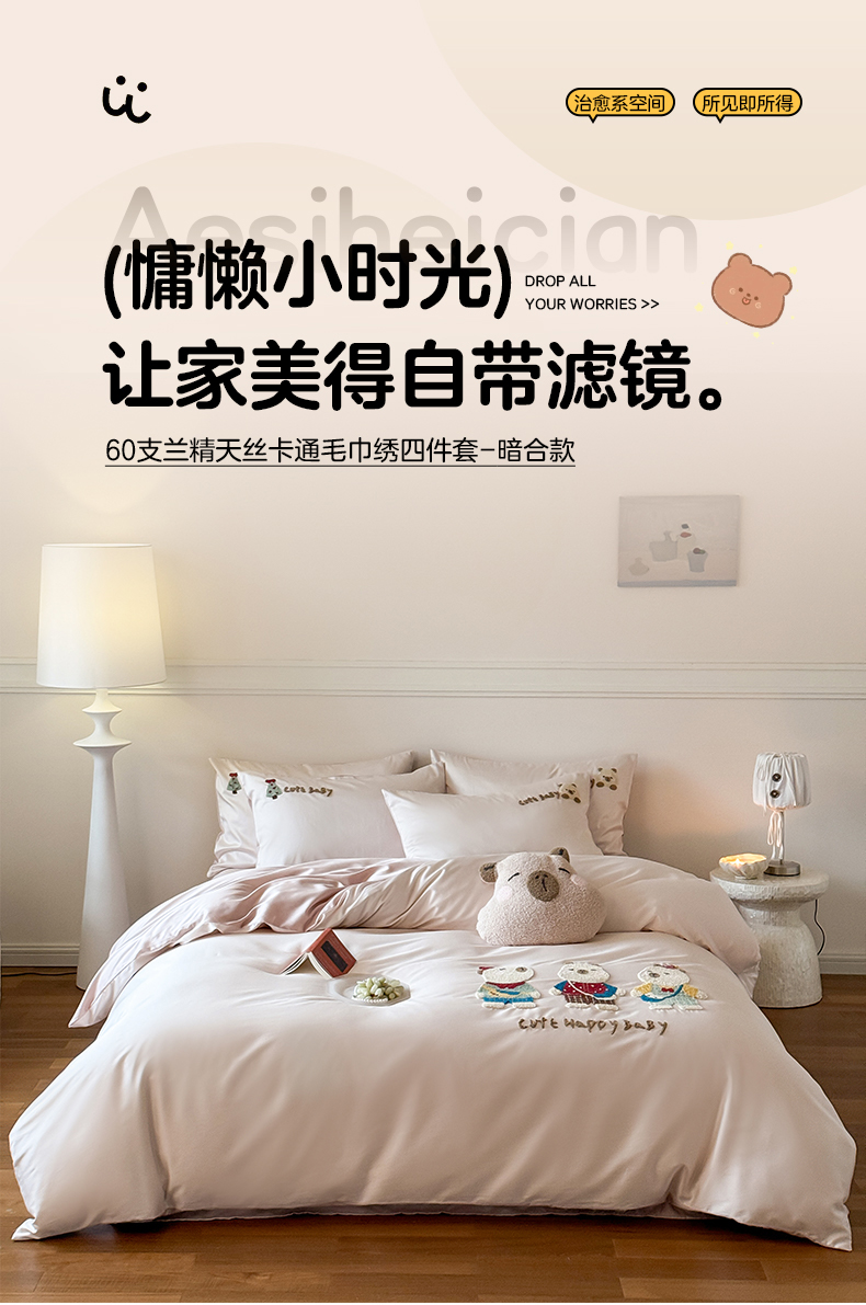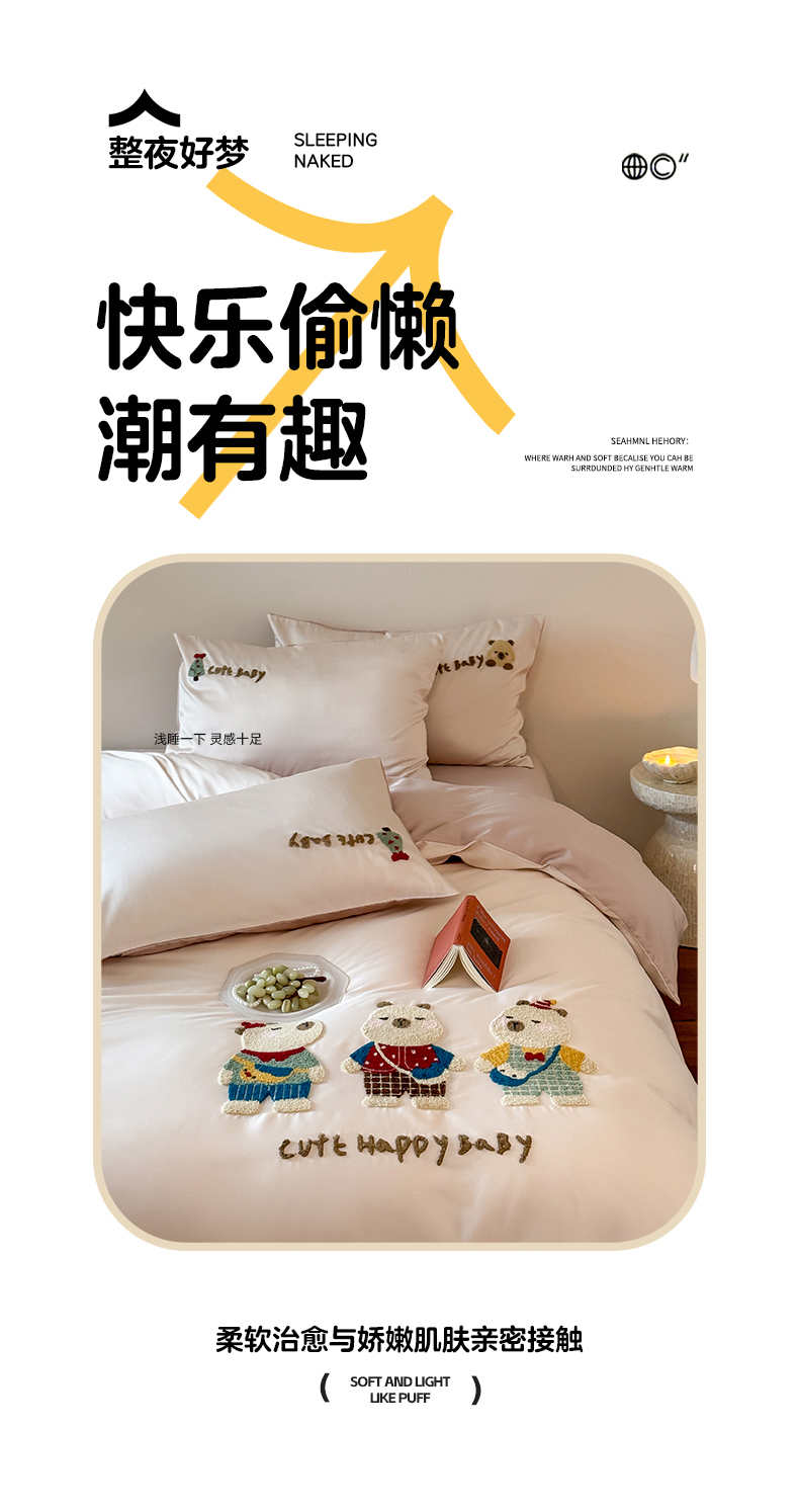 当前位置: 91家纺网 > 商品网购 > 床品套件 > 四件套 > 莱赛尔四件套 > (总)FORTWO家纺原创设计(FOR TWO家纺) 2025新款60支兰精天丝卡通毛巾绣四件套-暗合款