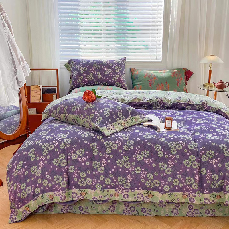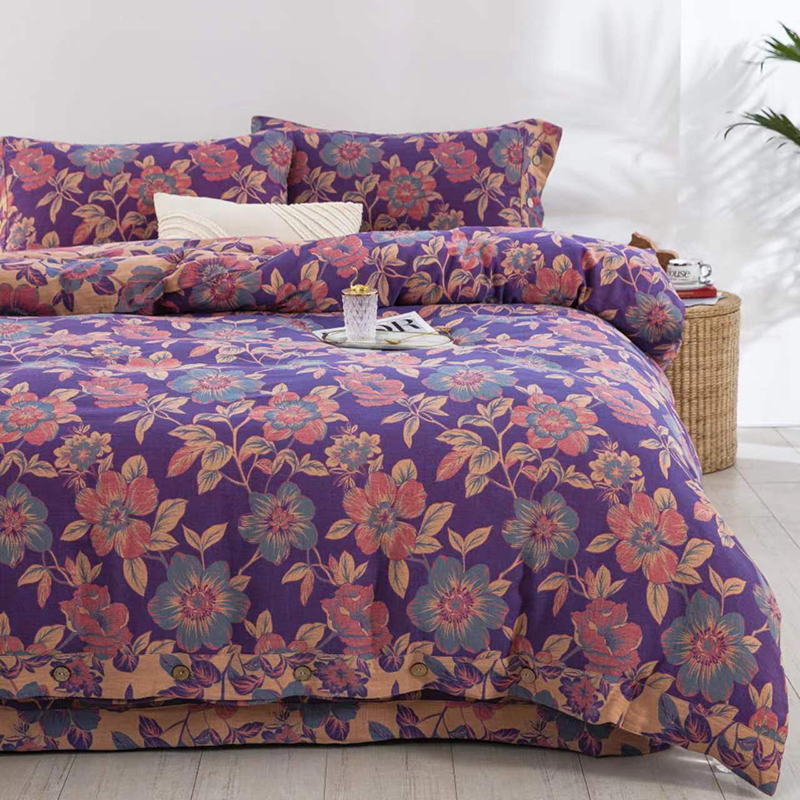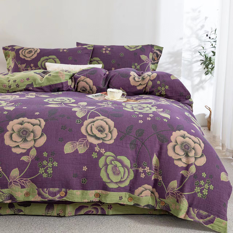 (总)双层纱家居 2024新款腊梅花系列四件套,梅醉春秋-粉,梅醉春秋-兰,梅醉春秋-紫