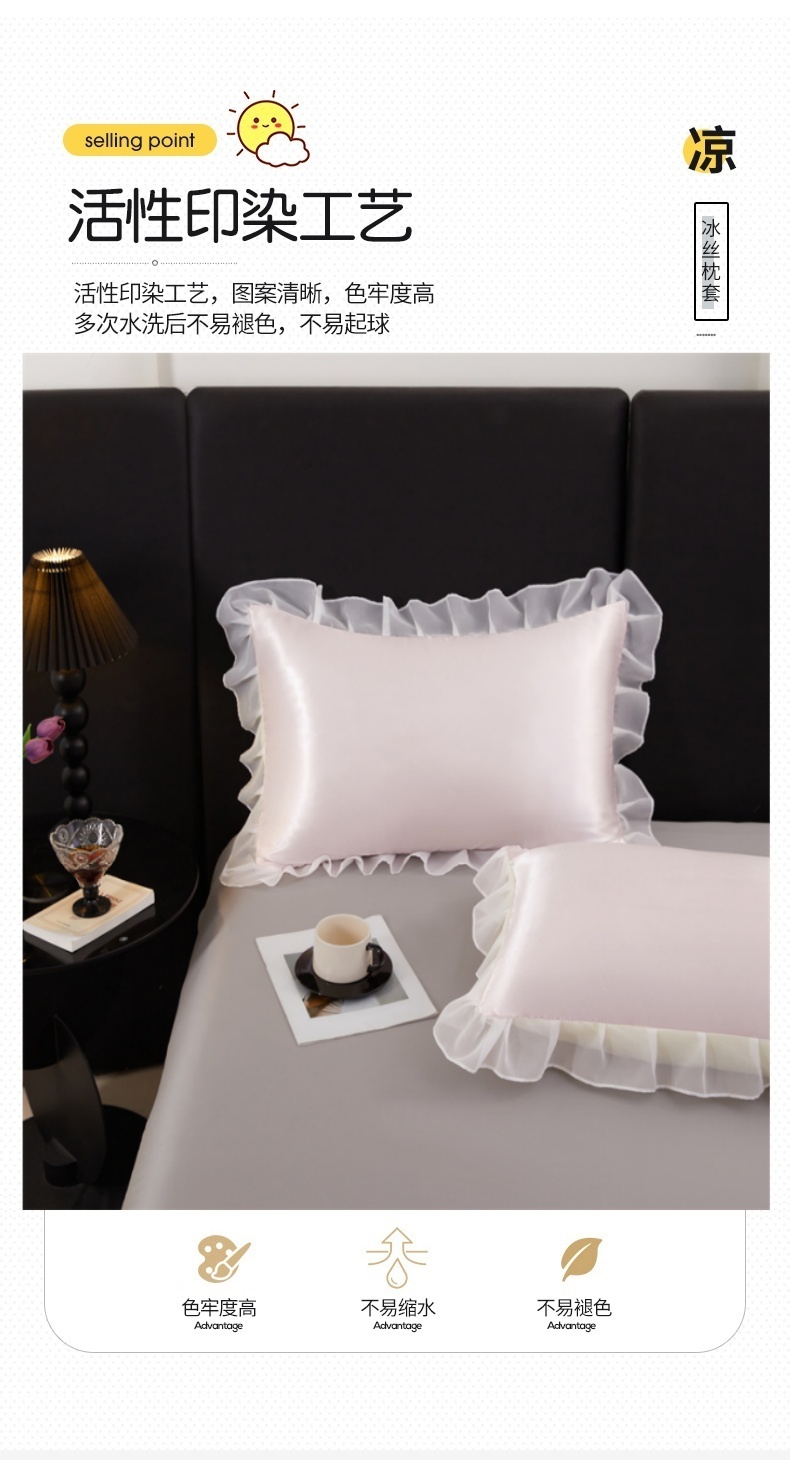 商品名称:梦舒羽 2025新款公主风夏季冰丝枕套单人一对装可水洗花边枕头套宿舍48x74cm枕芯套枕头套 花边款-淡雅玉