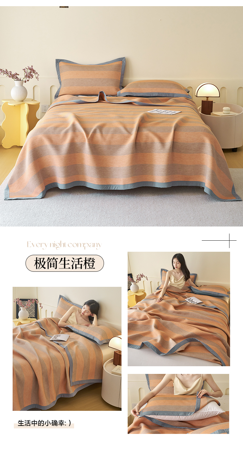 • 91家纺网 家纺一手货源 找家纺 棠薇家纺2025新款简约风多功能纱布盖毯纱布毯子毛巾被床盖沙发巾单毯枕巾枕套三件套 极简生活橙
