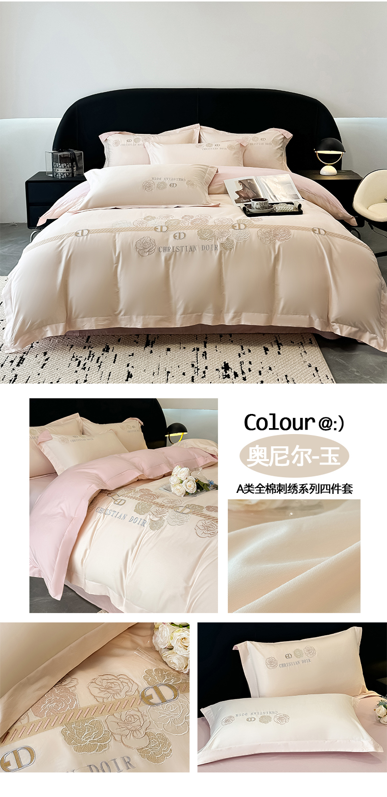 商品名称:懒猫家纺 高精密40支13374全棉喷气绣花四件套 【带礼盒】 奥尼尔-玉