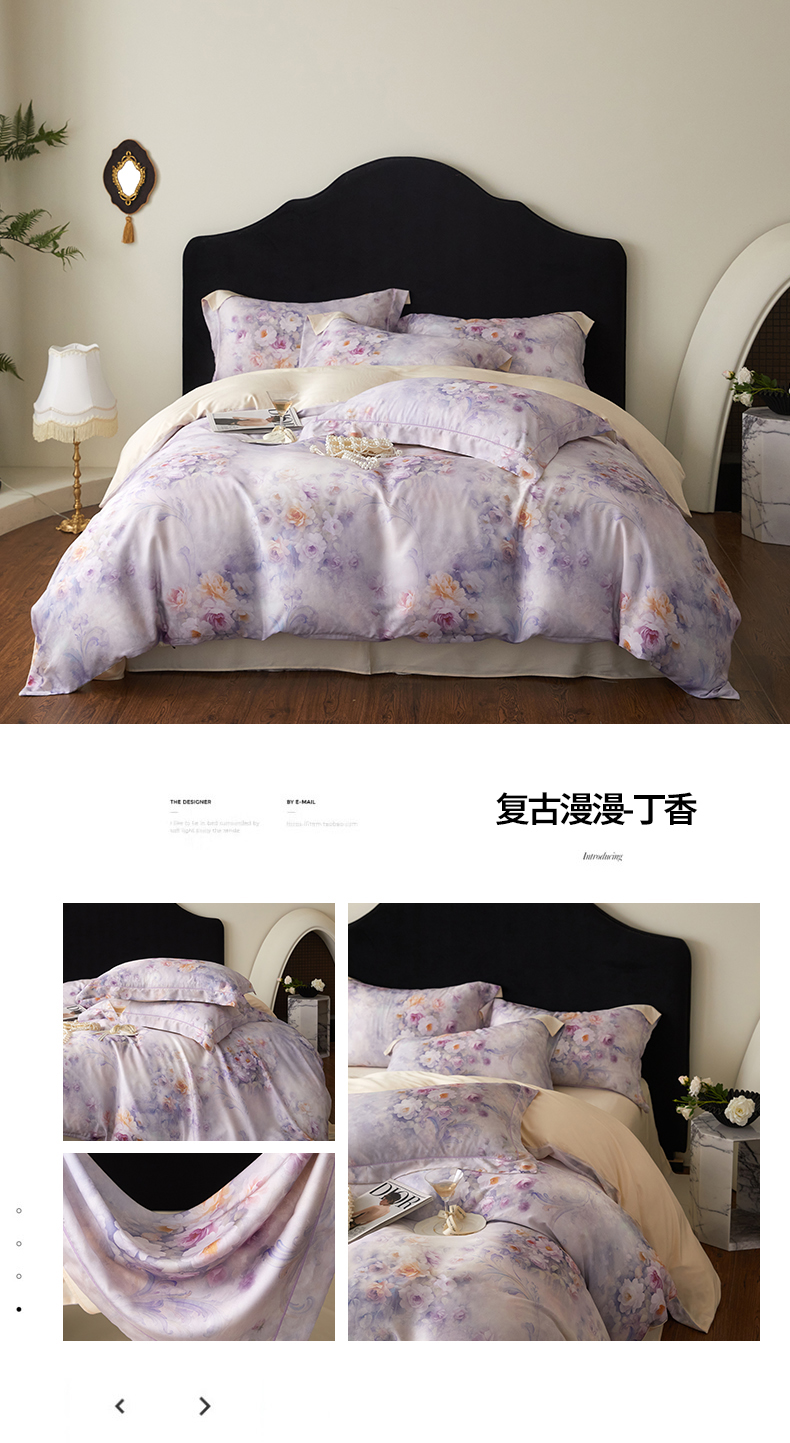商品名称:金奇达家纺 2025新款竹玉清丝四件套-雅韵【标准号全网控价(折后券后)不低于元228元】 复古漫漫-丁香
