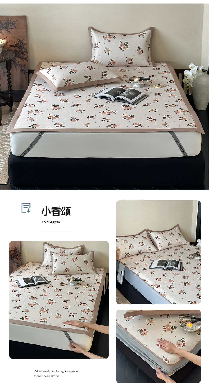 商品名称:三味舒屋 2025新款抗菌防螨小花卉系列900D高端印花冰藤凉席 小香颂 床笠