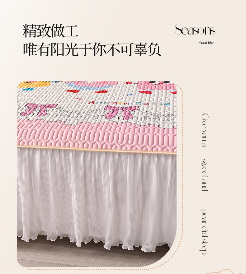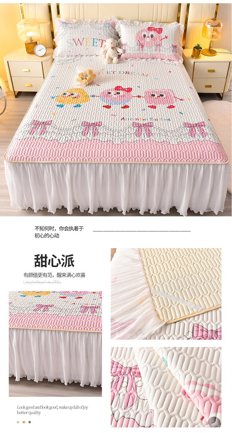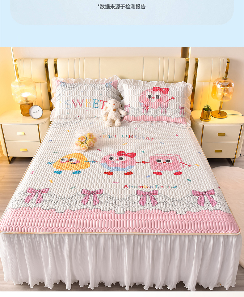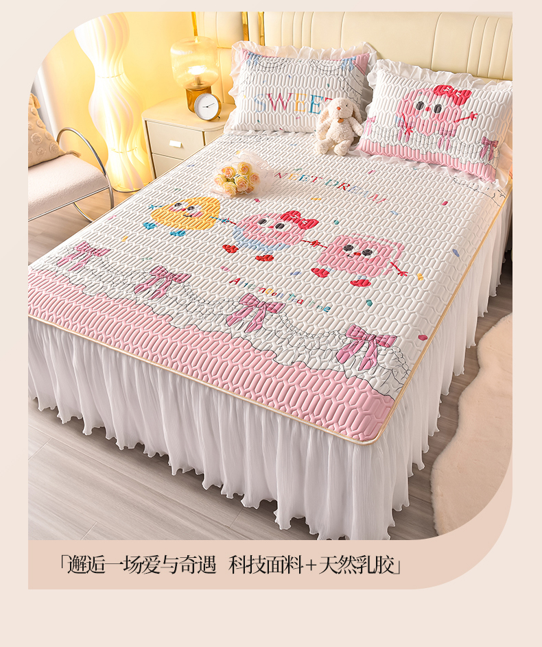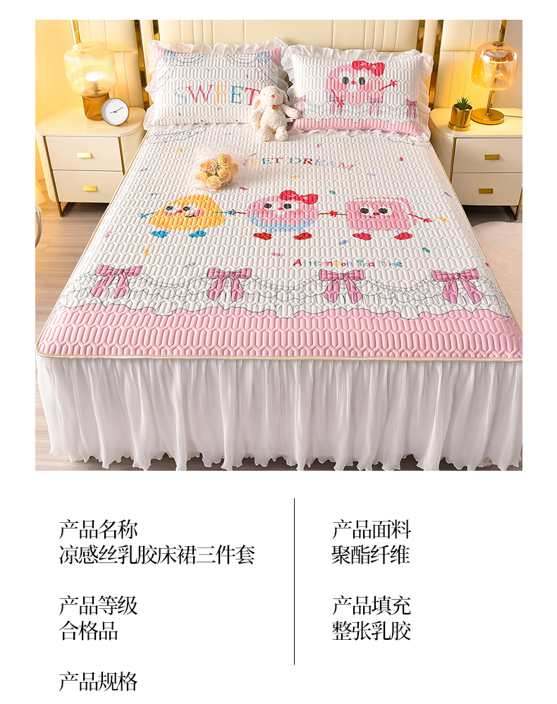 炫拼家纺 2025新款凉感丝印花床裙款乳胶凉席三件套 甜心派