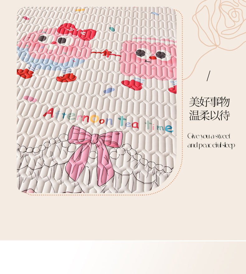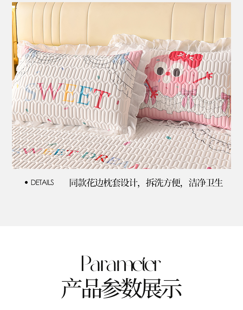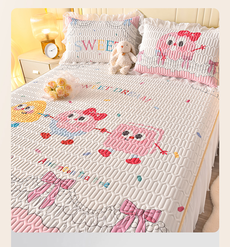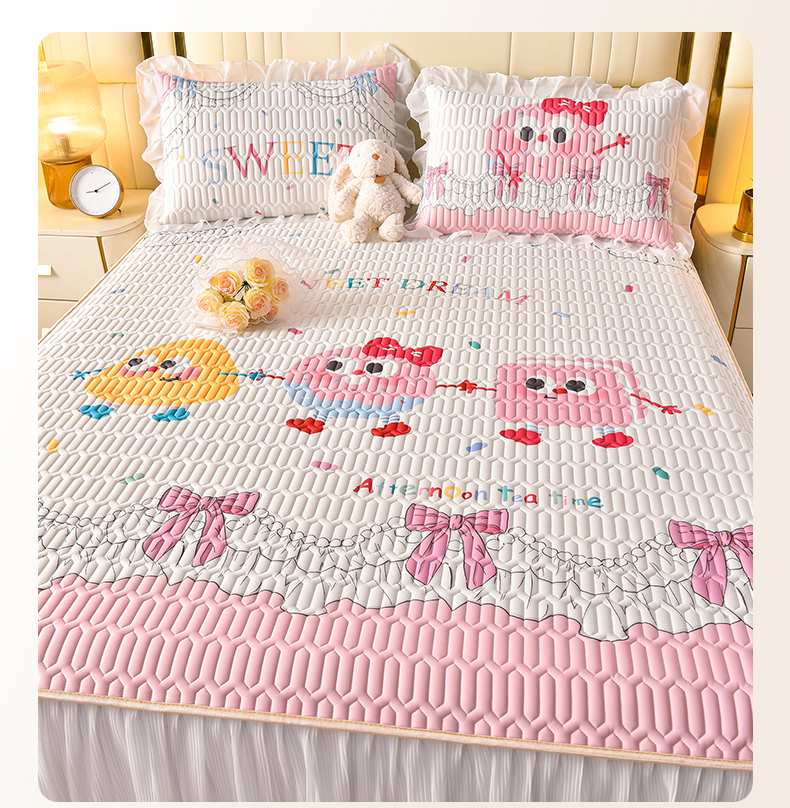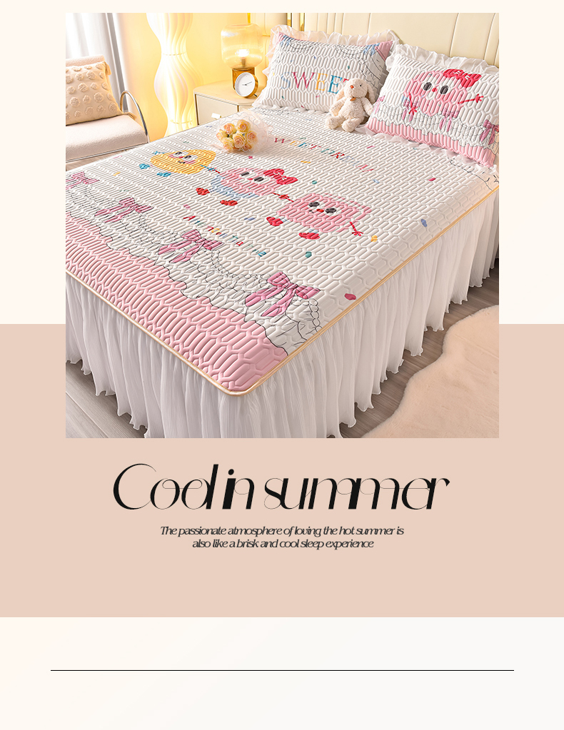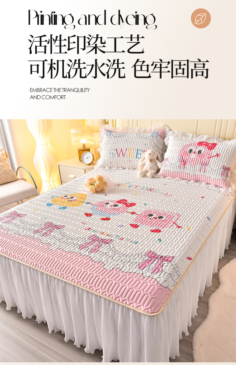 炫拼家纺 2025新款凉感丝印花床裙款乳胶凉席三件套 甜心派