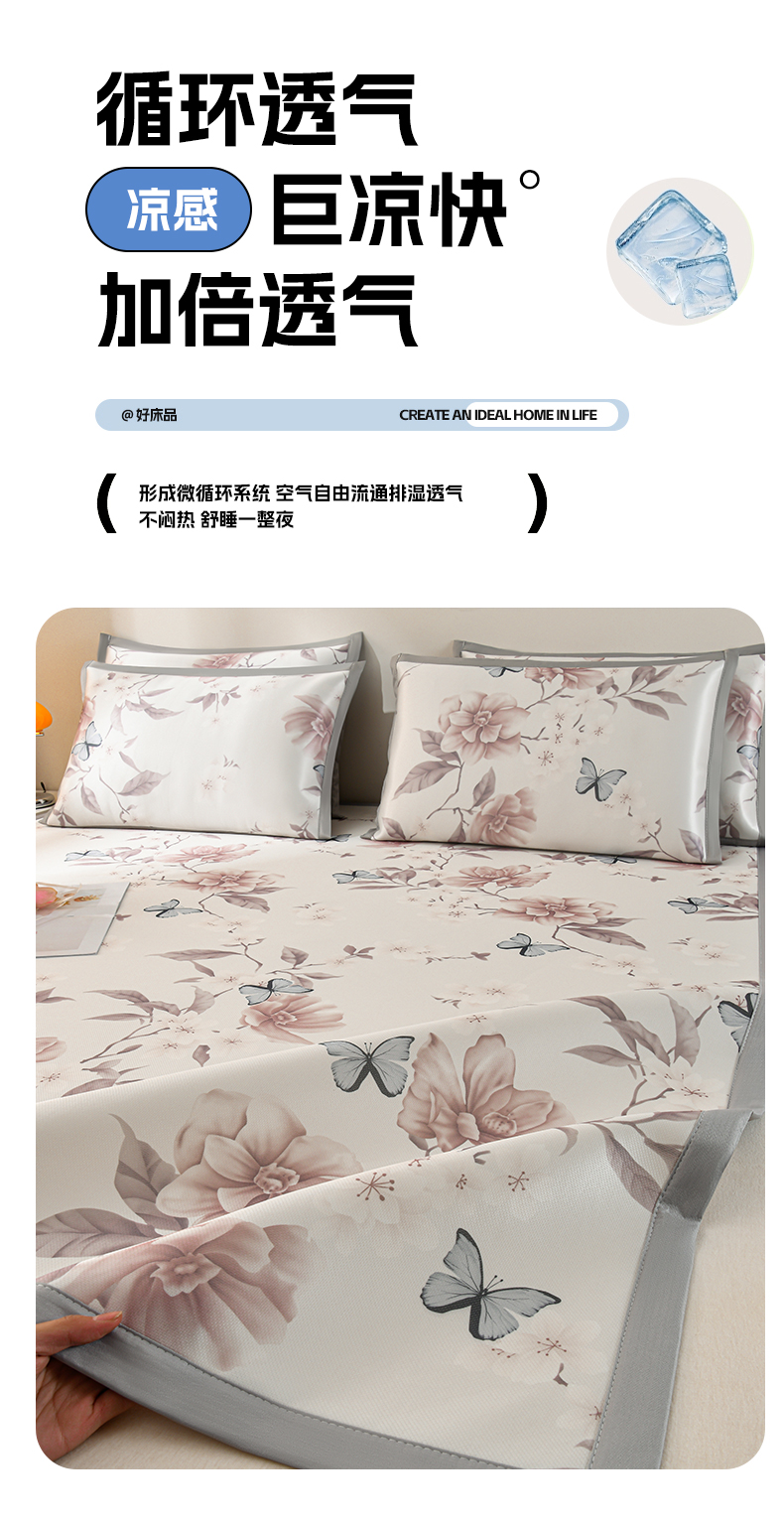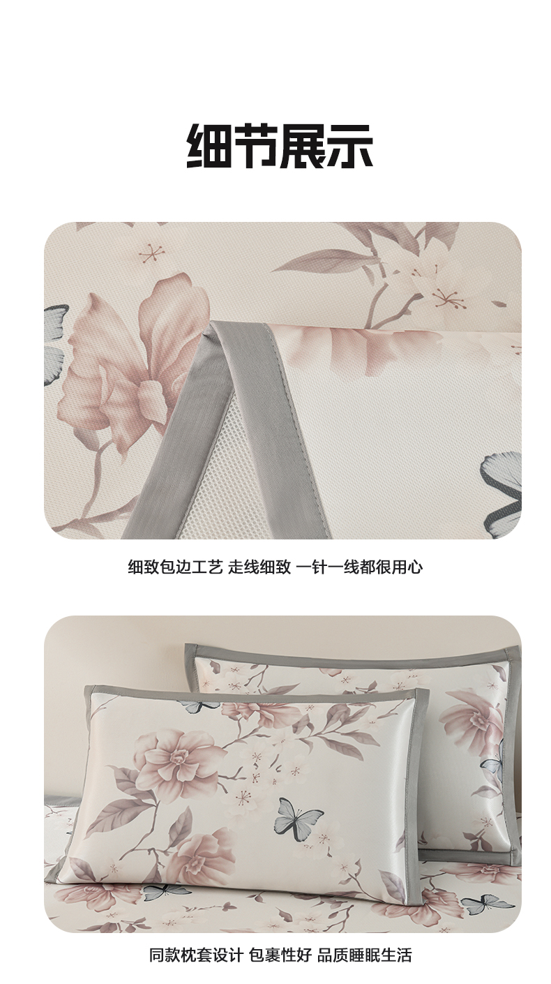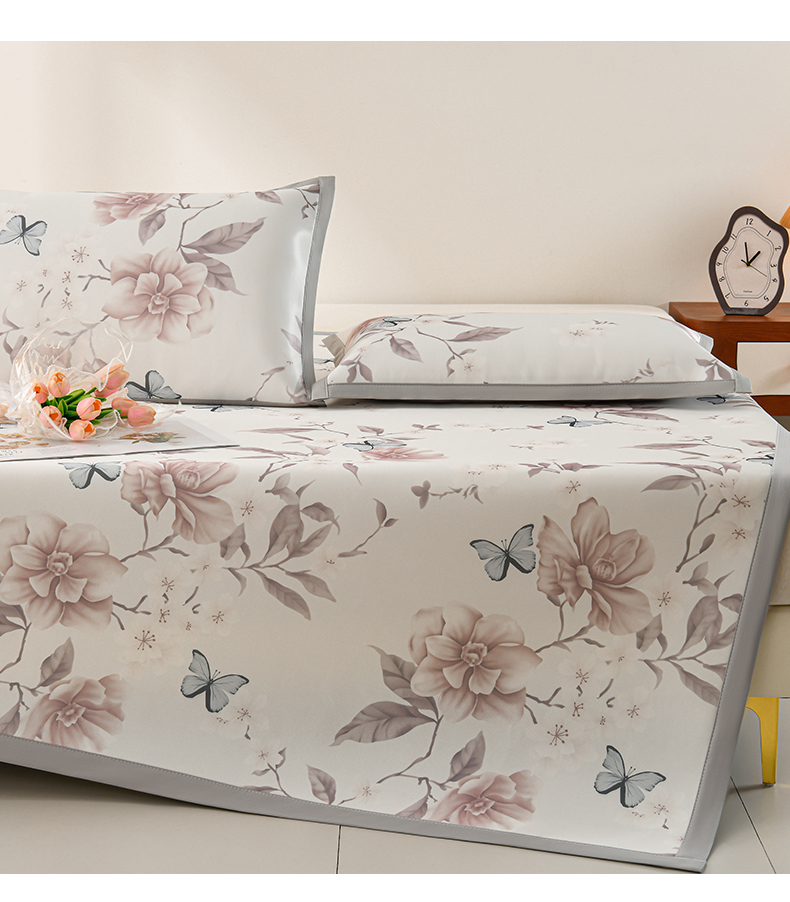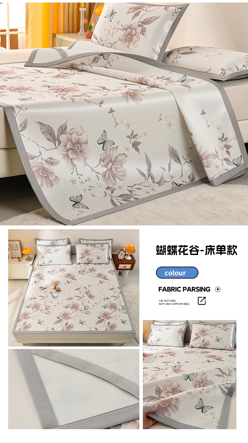 商品名称:简一 2025新款A类碳光印花数码冰丝凉席系列-床单款 蝴蝶花谷