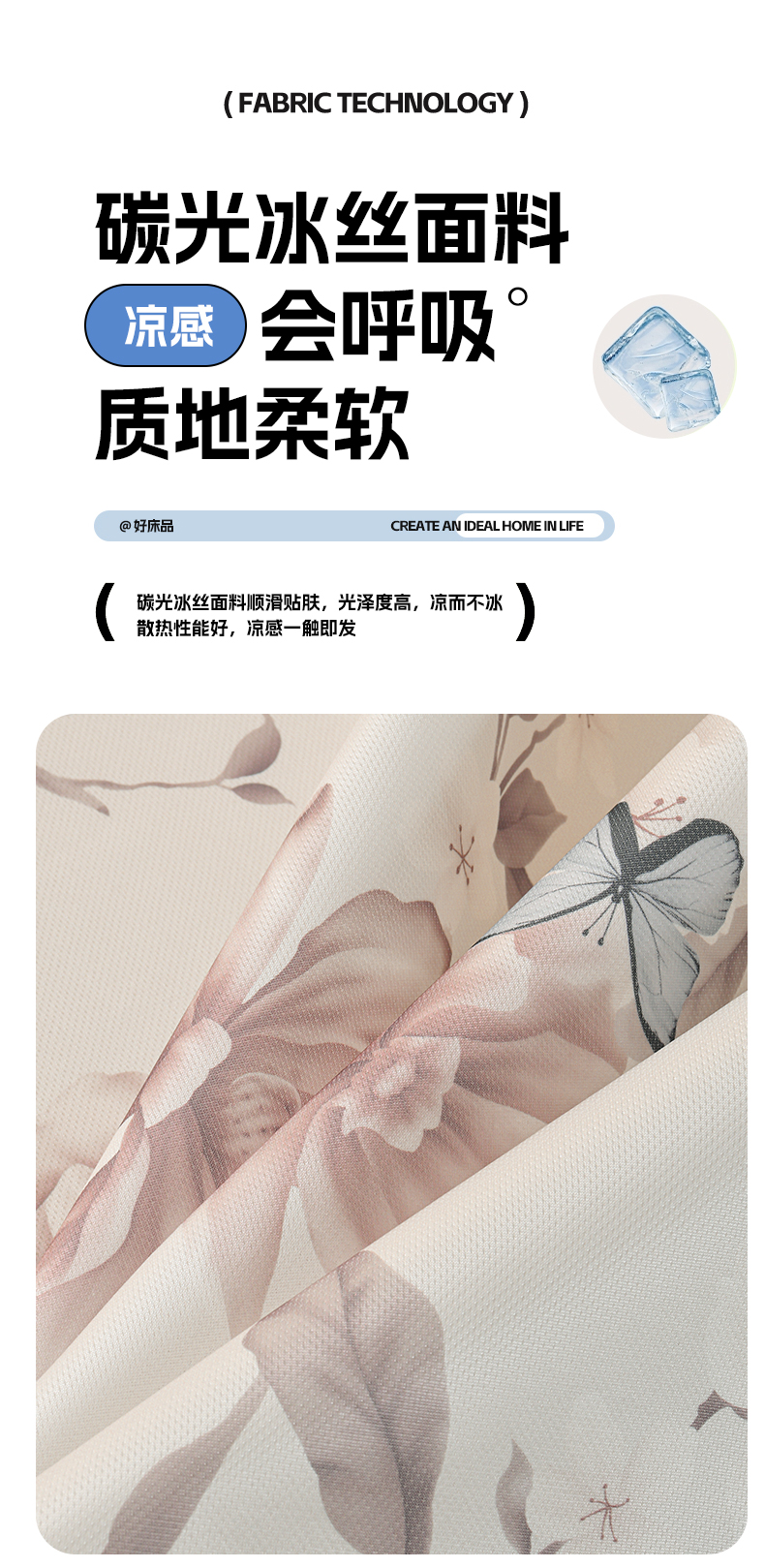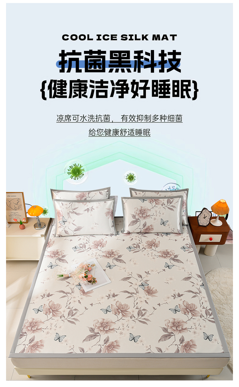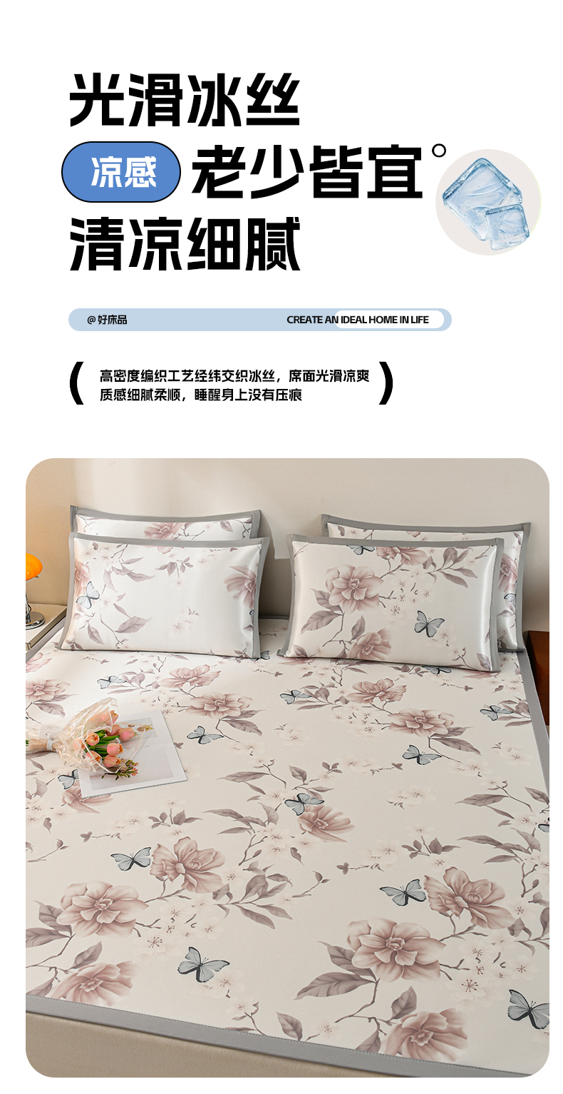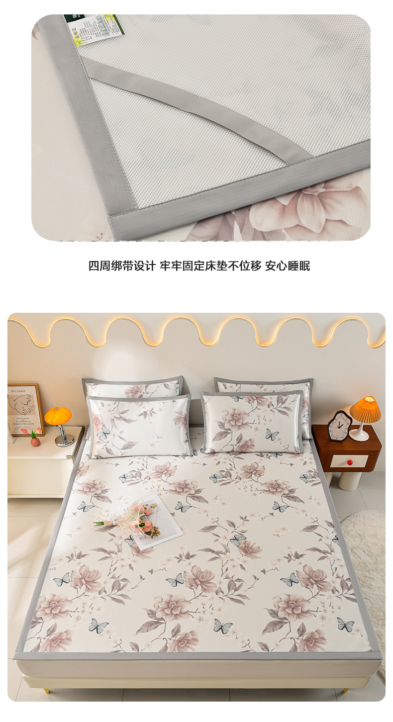 商品名称:简一 2025新款A类碳光印花数码冰丝凉席系列-床单款 蝴蝶花谷