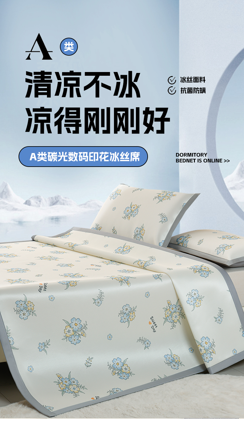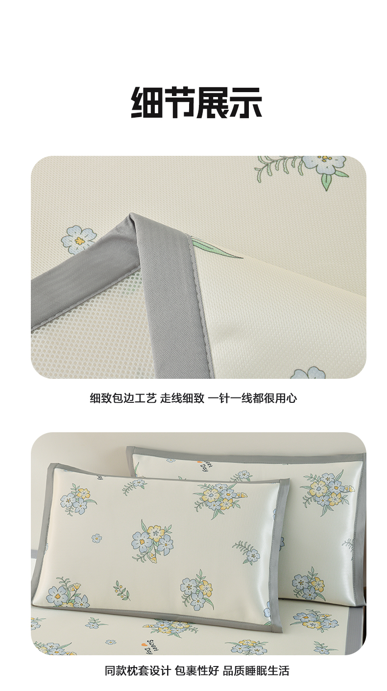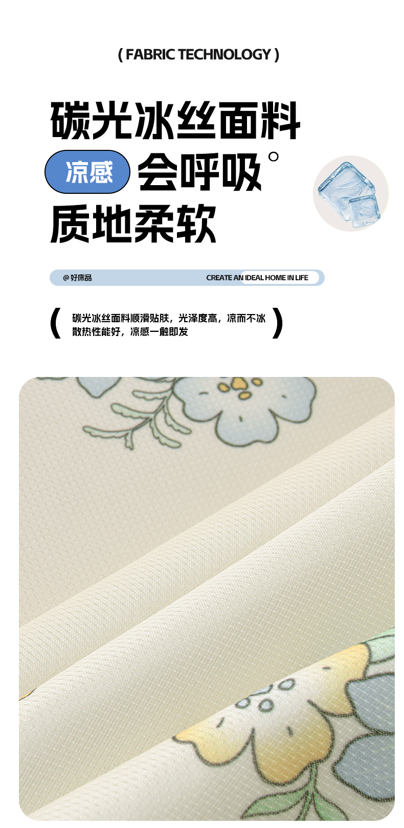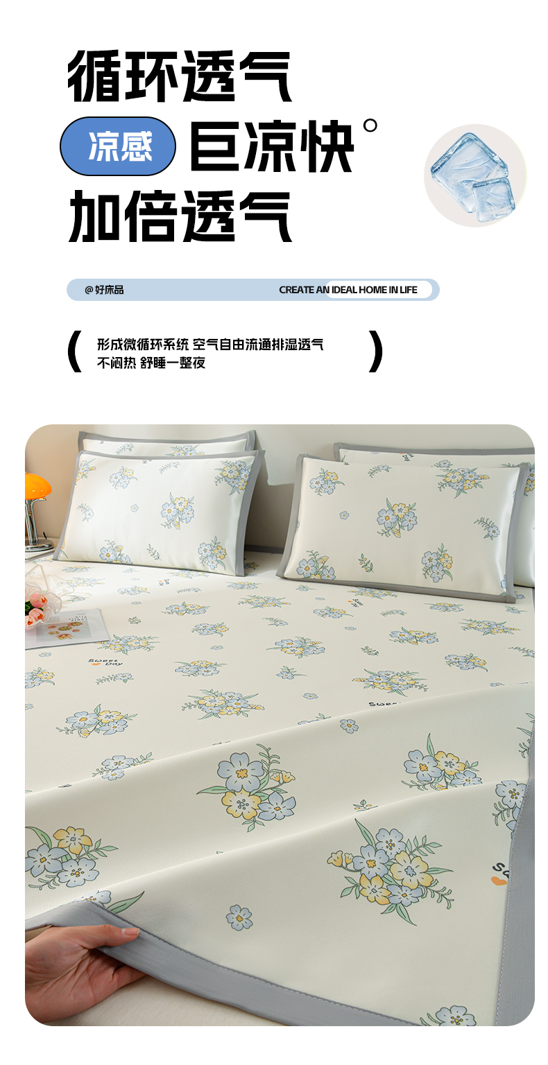 商品名称:简一 2025新款A类碳光印花数码冰丝凉席系列-床单款 觅境花园