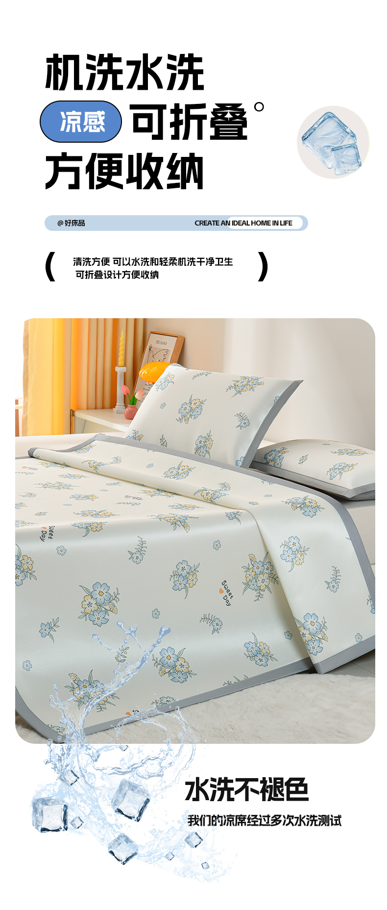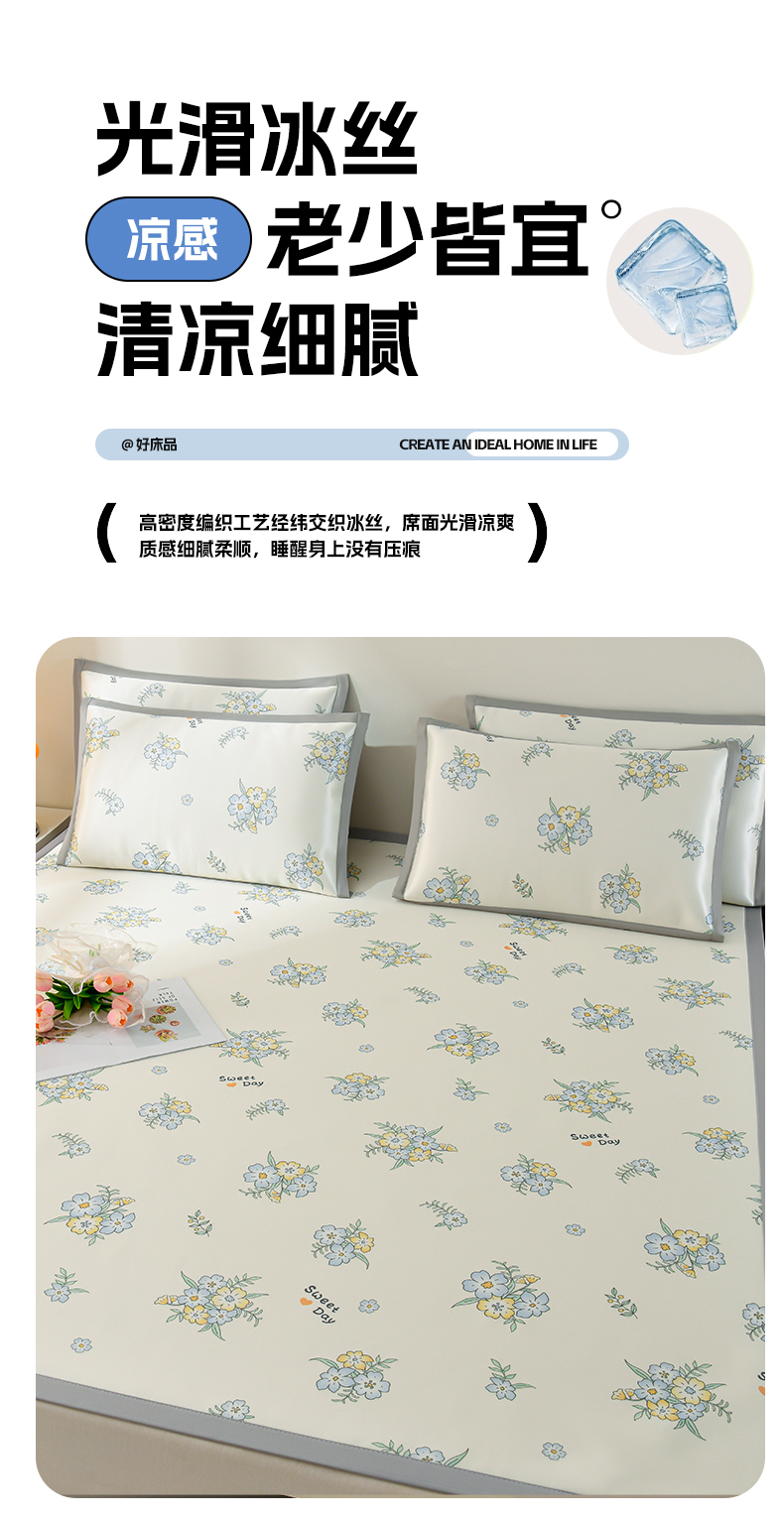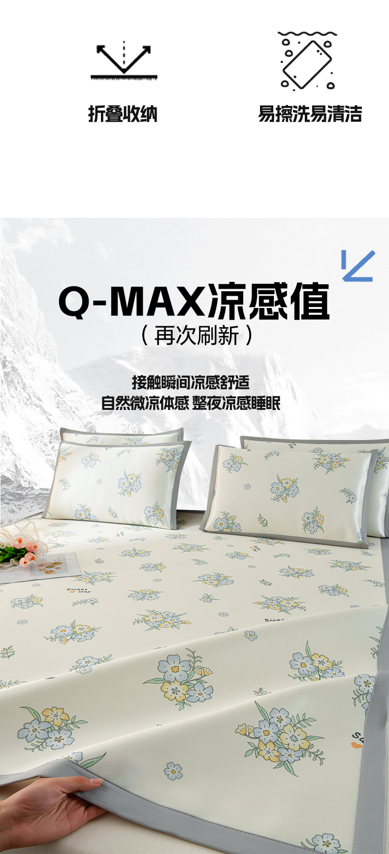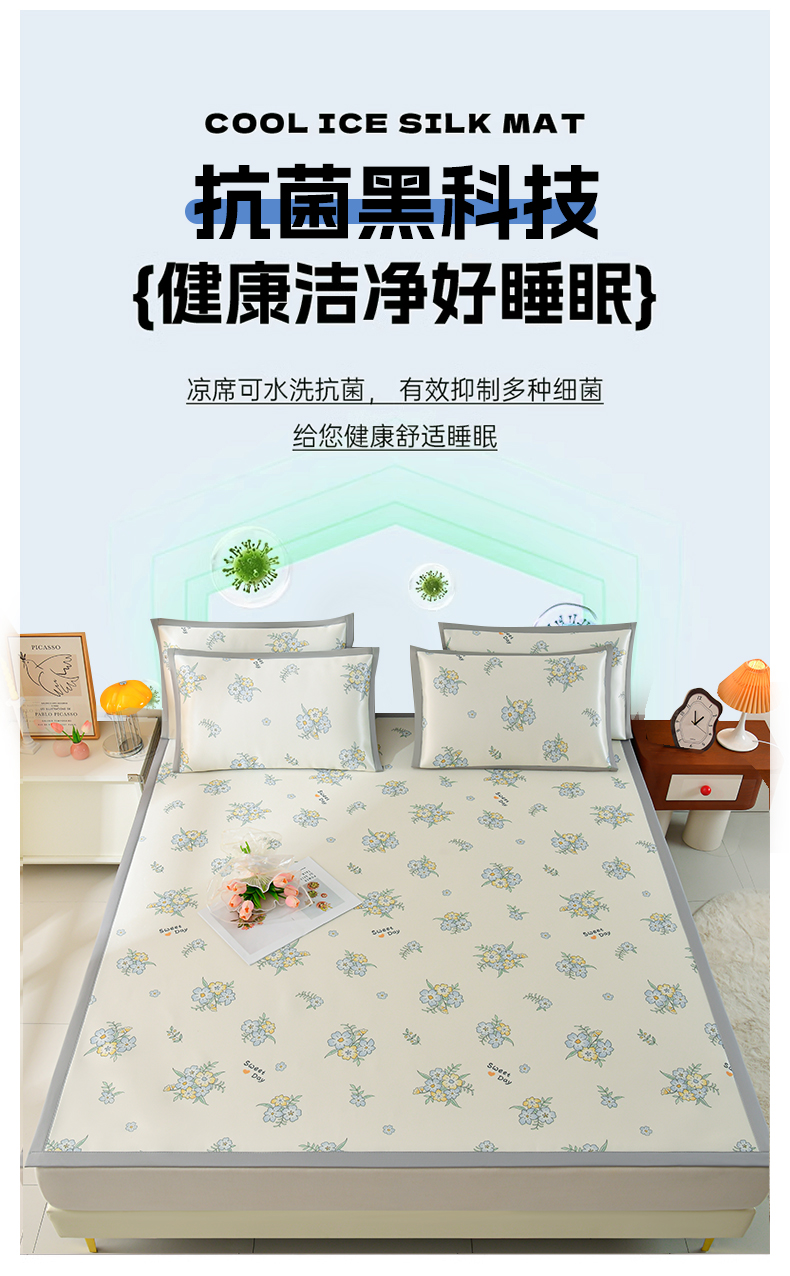 商品名称:简一 2025新款A类碳光印花数码冰丝凉席系列-床单款 觅境花园