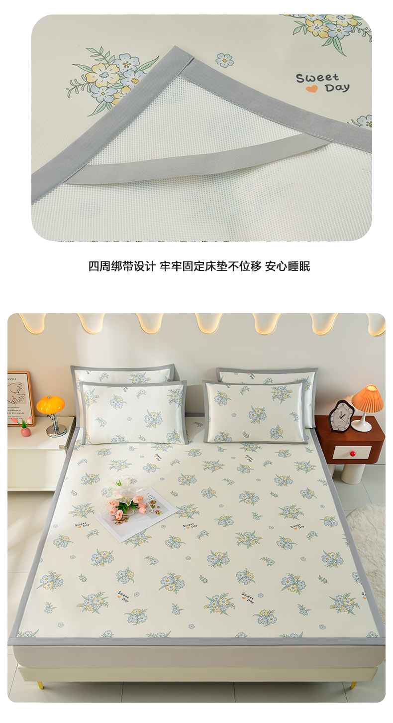 简一 2025新款A类碳光印花数码冰丝凉席系列-床单款 觅境花园