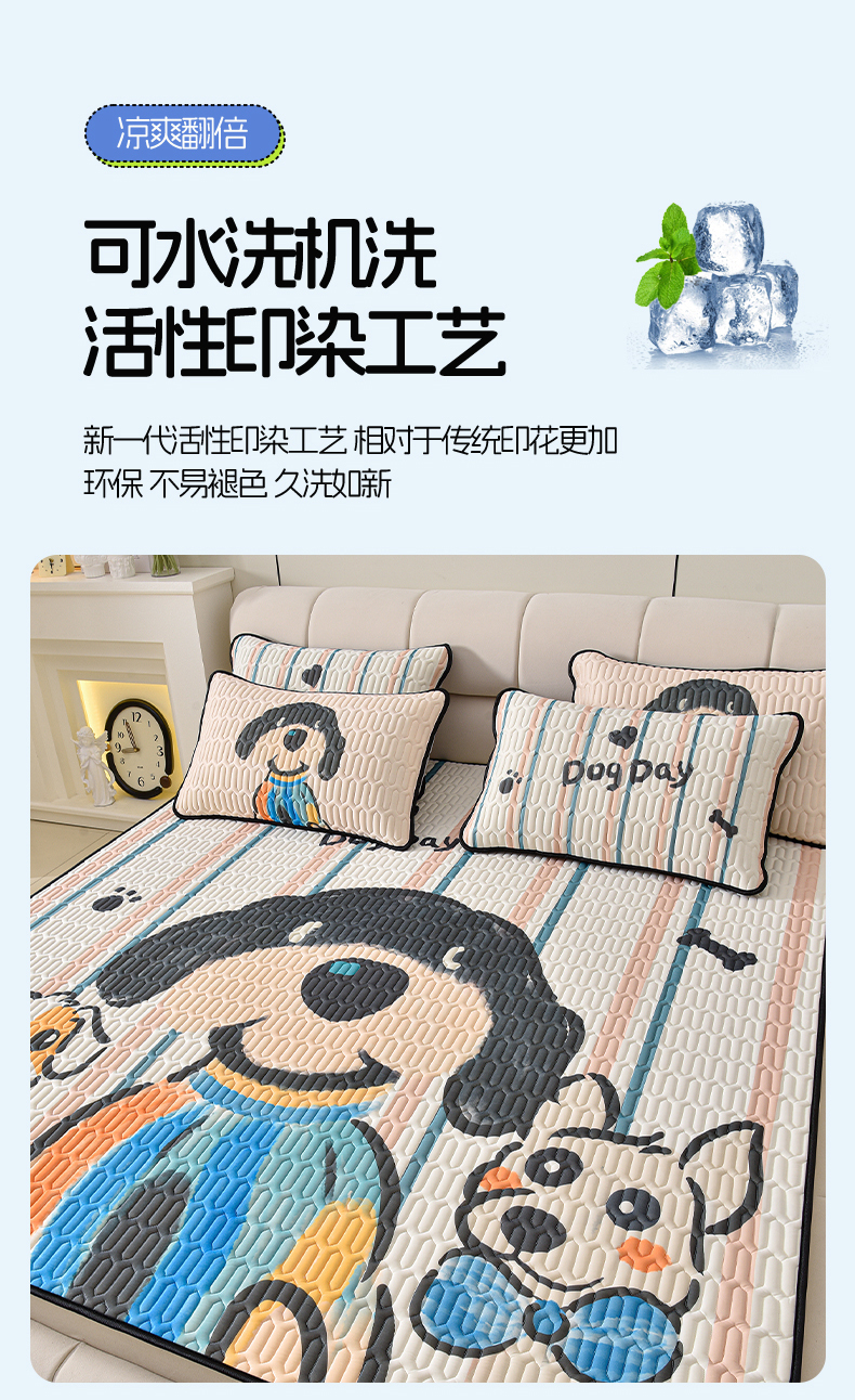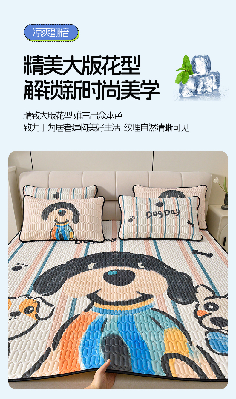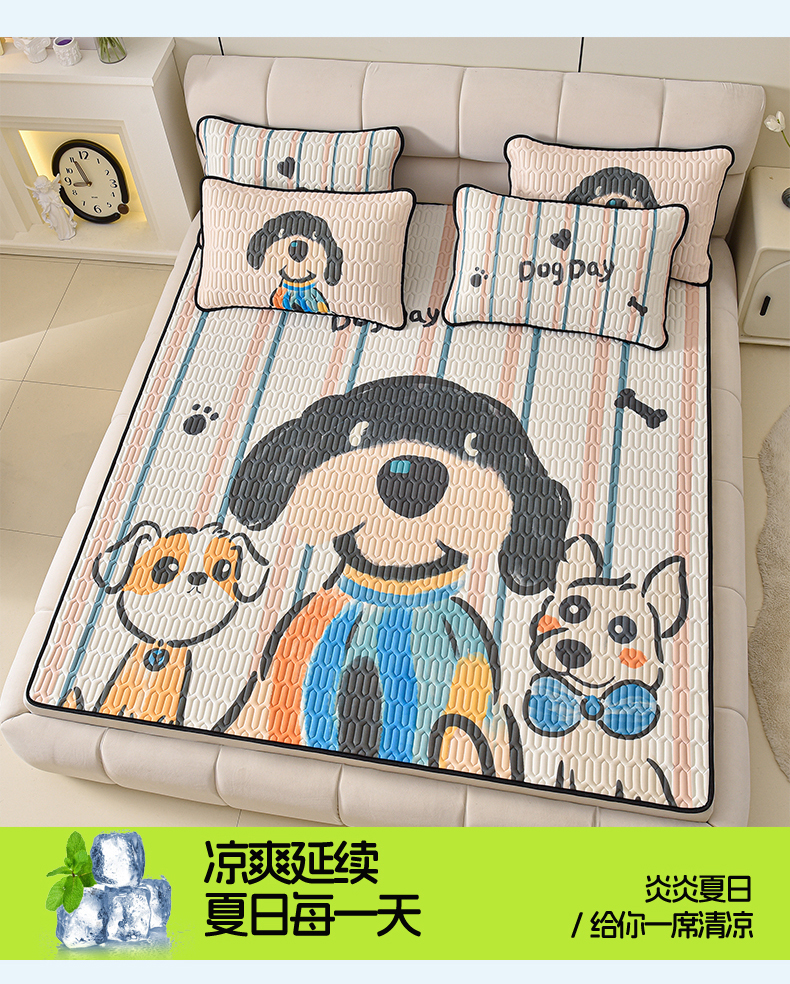 炫拼家纺 2025新款凉感丝大版乳胶凉席三件套 狗狗队长