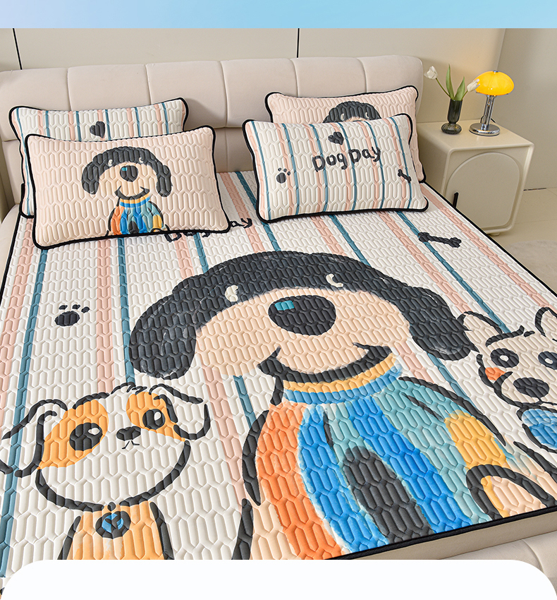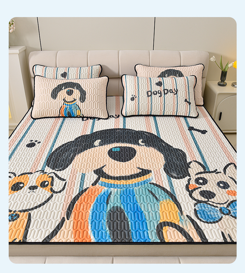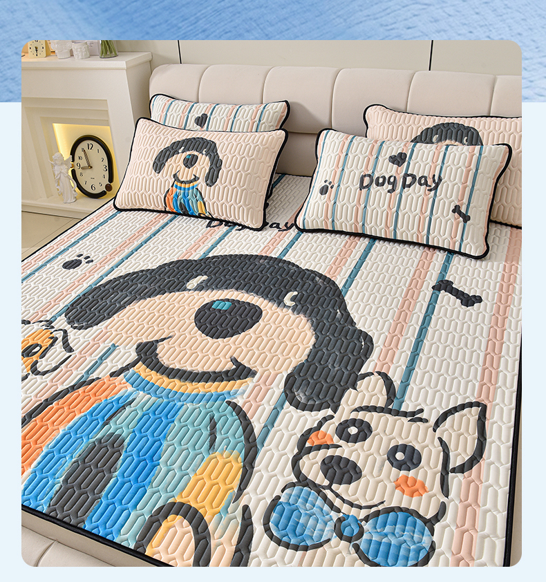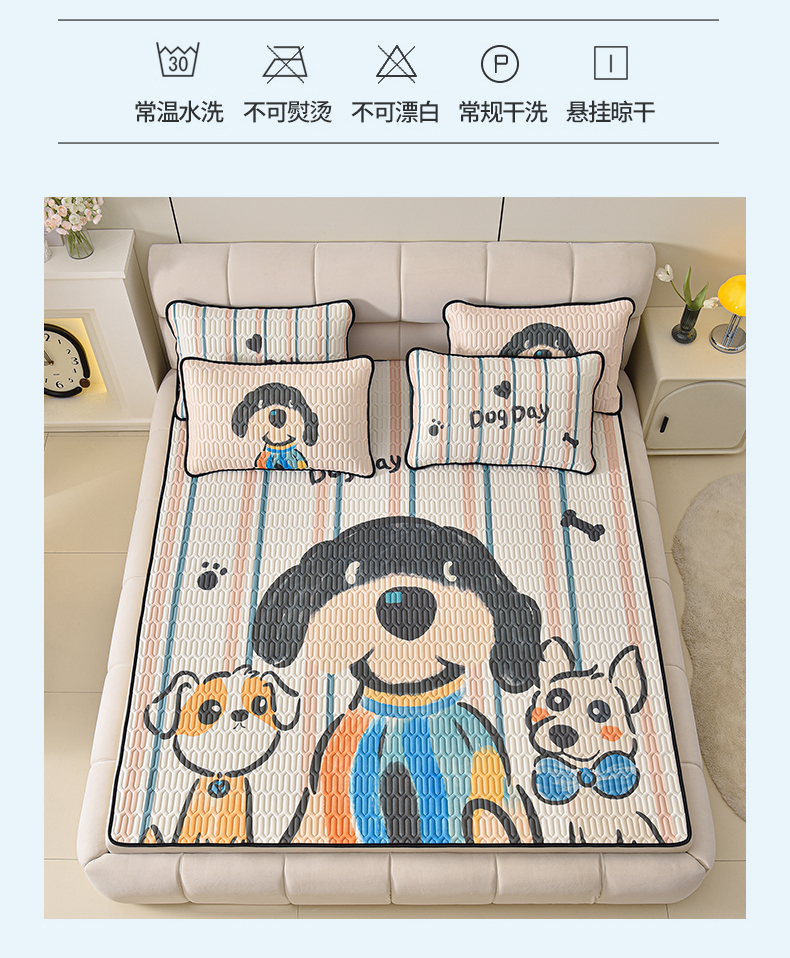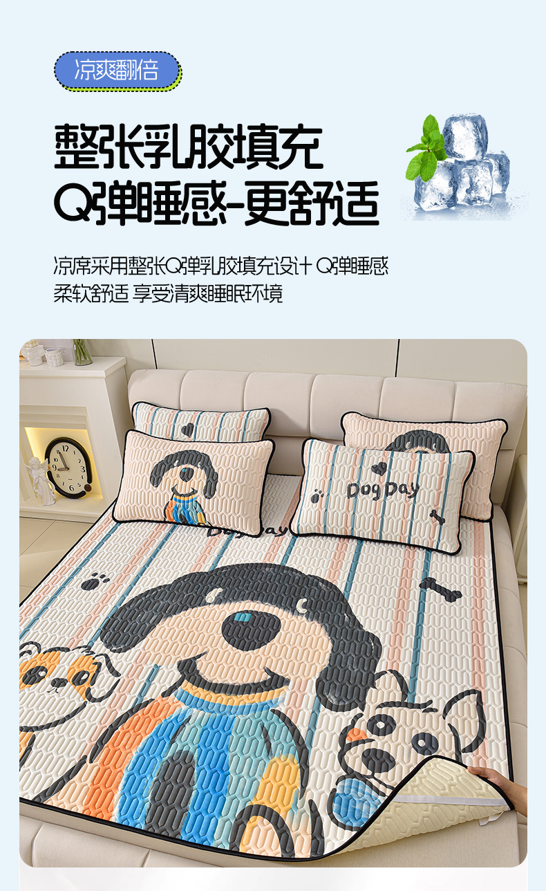 炫拼家纺 2025新款凉感丝大版乳胶凉席三件套 狗狗队长