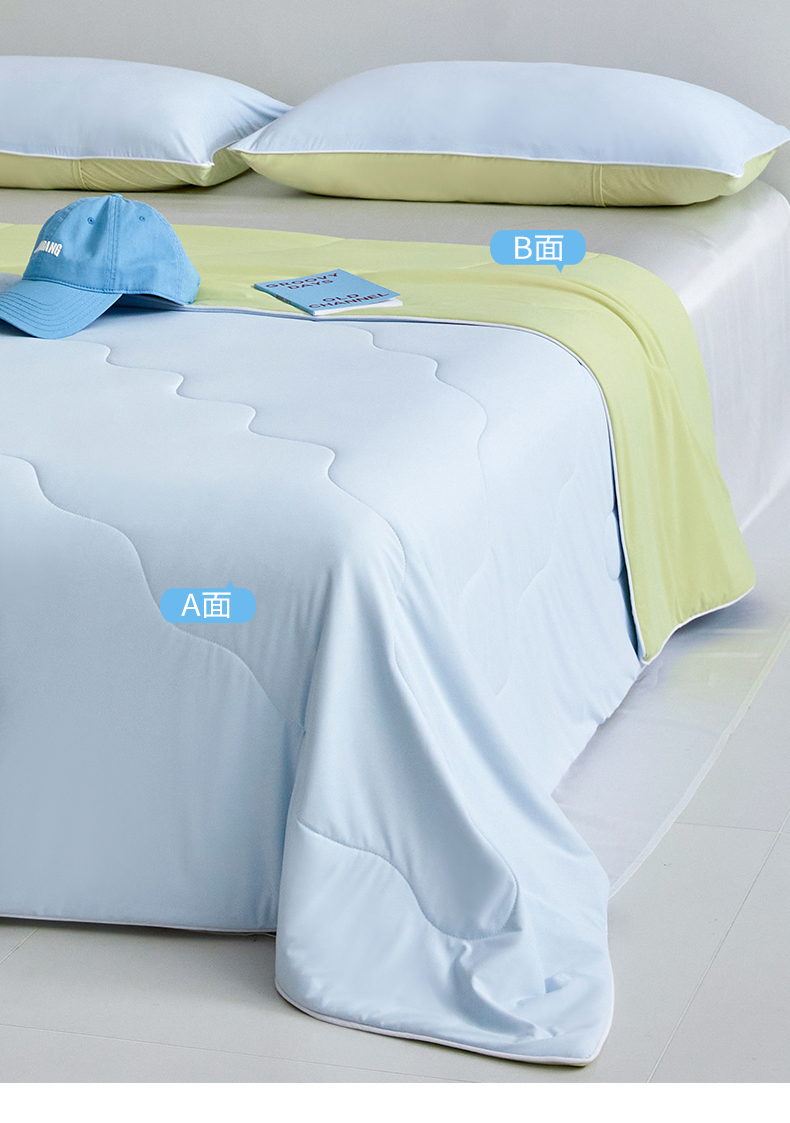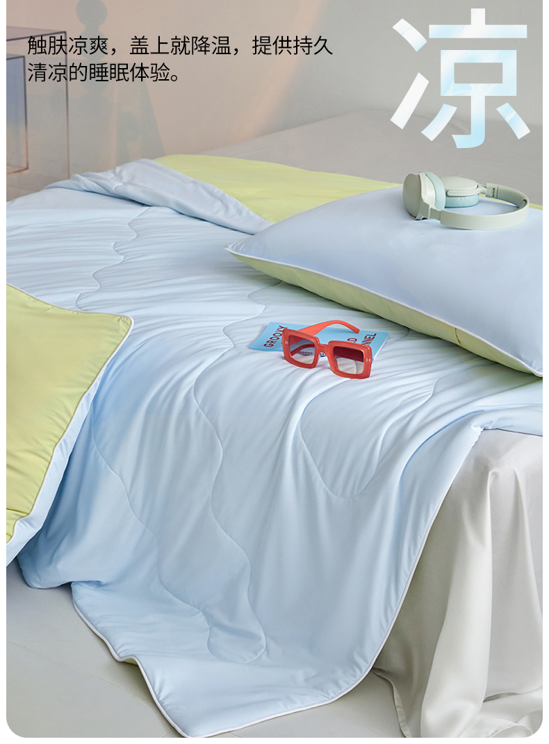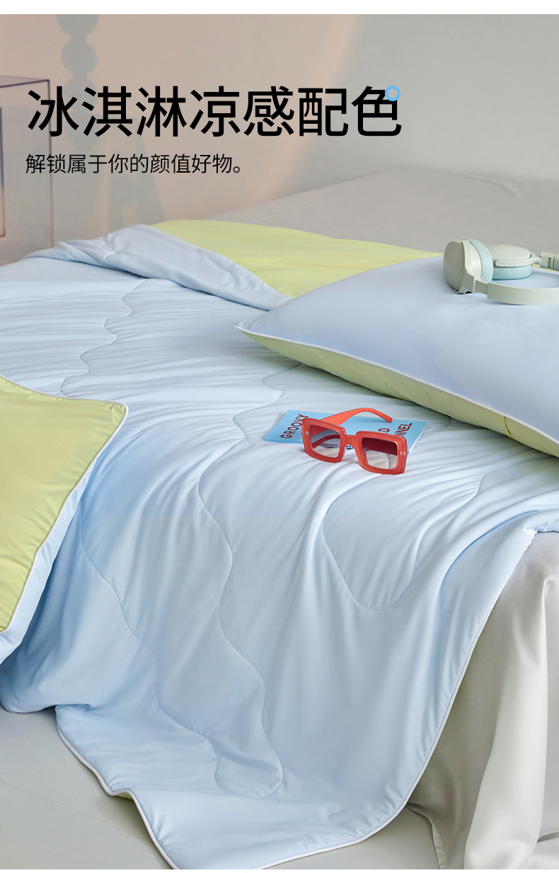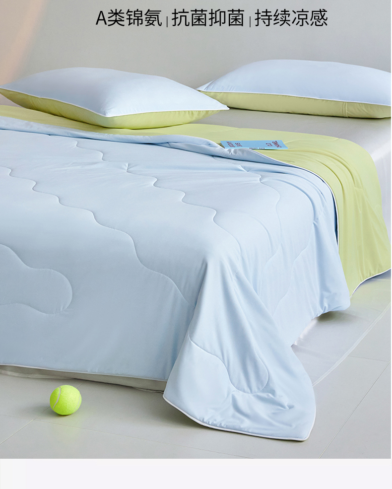 商品名称:头等舱 2025新款4.0版凉感A类锦氨(165克)55大豆抗菌夏被配礼盒 典雅兰拼黄绿