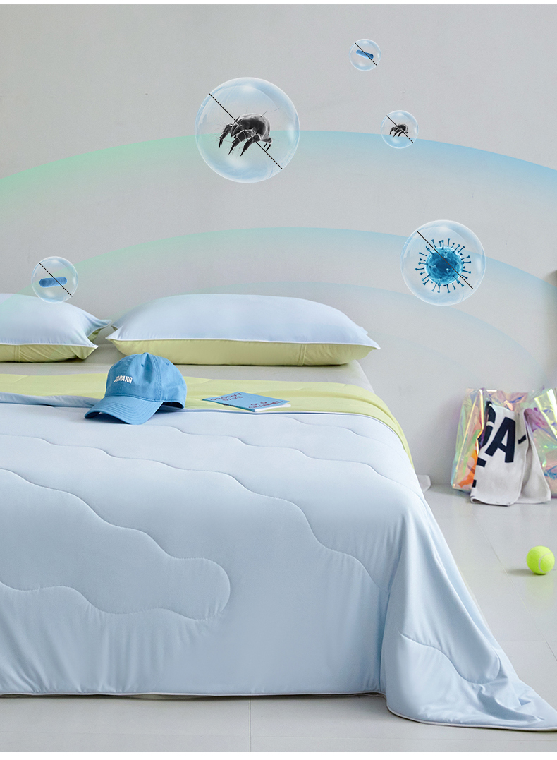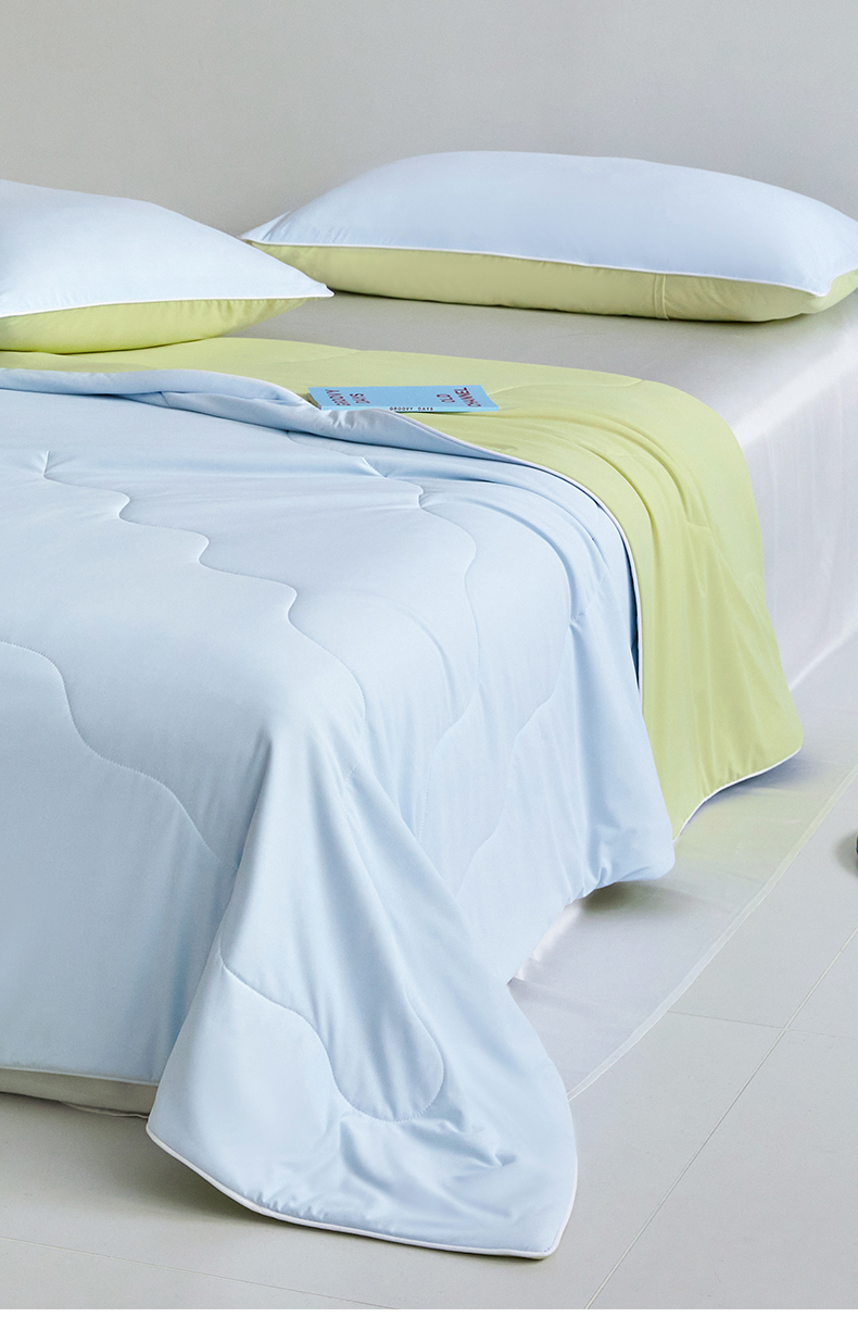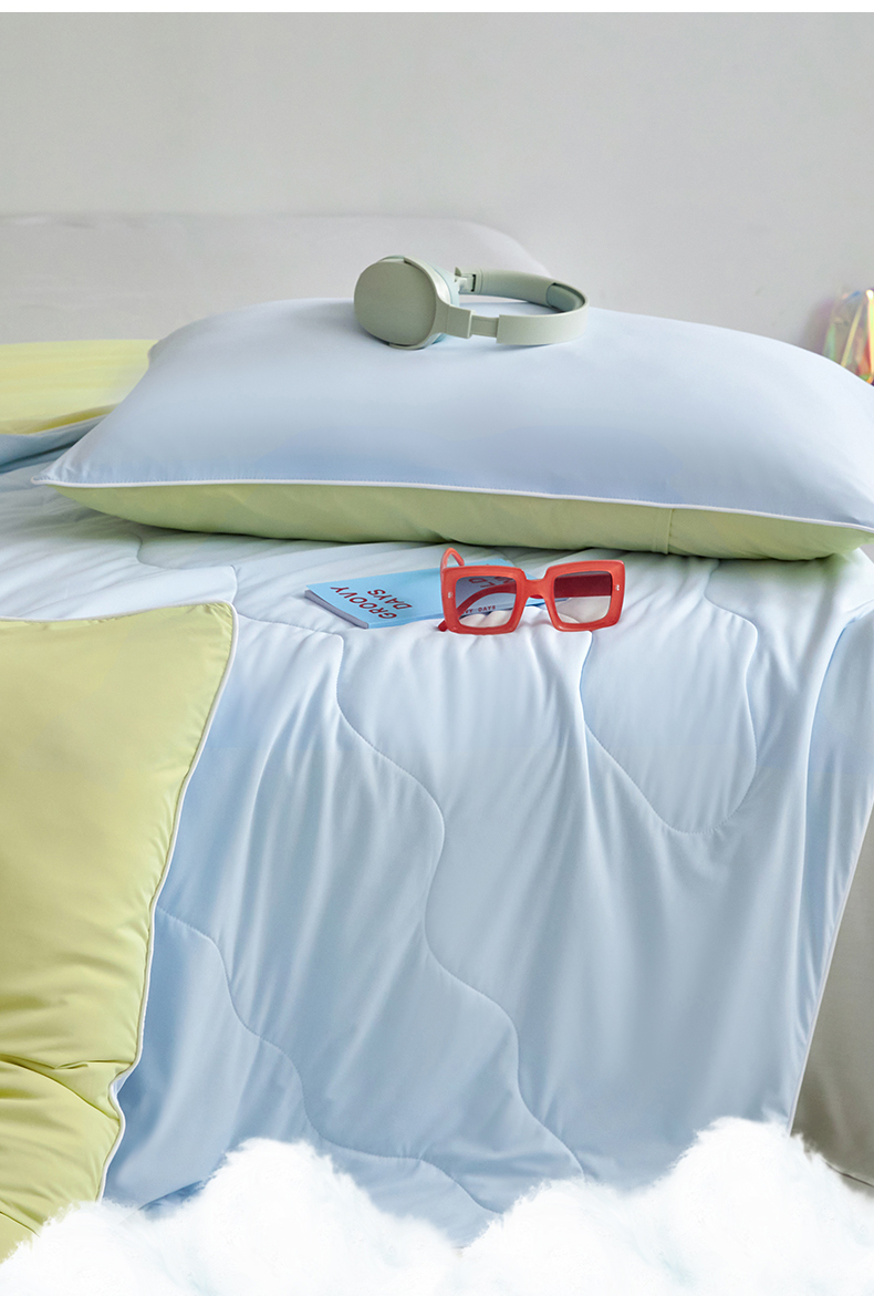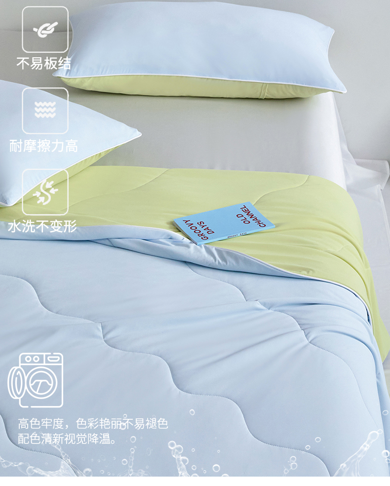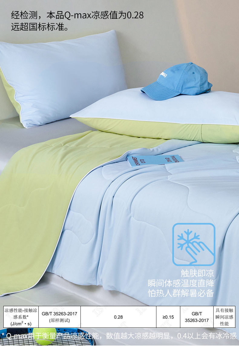 商品名称:头等舱 2025新款4.0版凉感A类锦氨(165克)55大豆抗菌夏被配礼盒 典雅兰拼黄绿