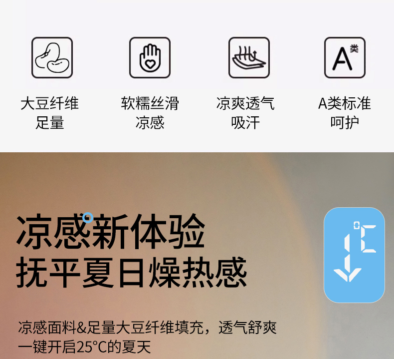 头等舱 2025新款4.0版凉感A类锦氨(165克)55大豆抗菌夏凉被夏被配礼盒模特图 米黄拼浅绿