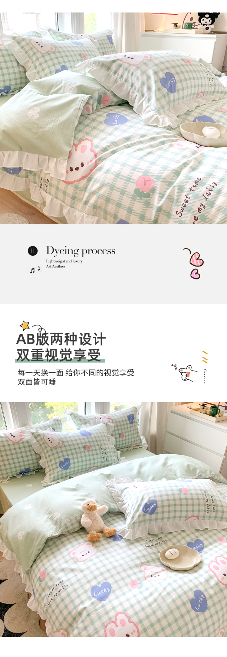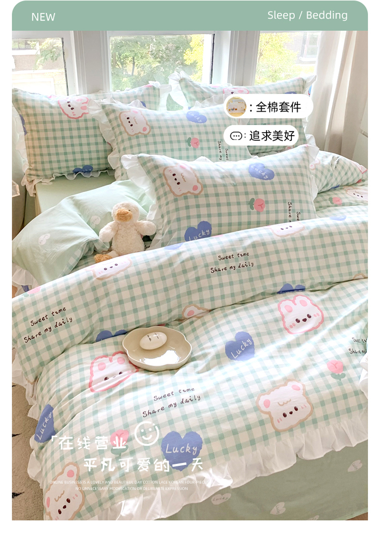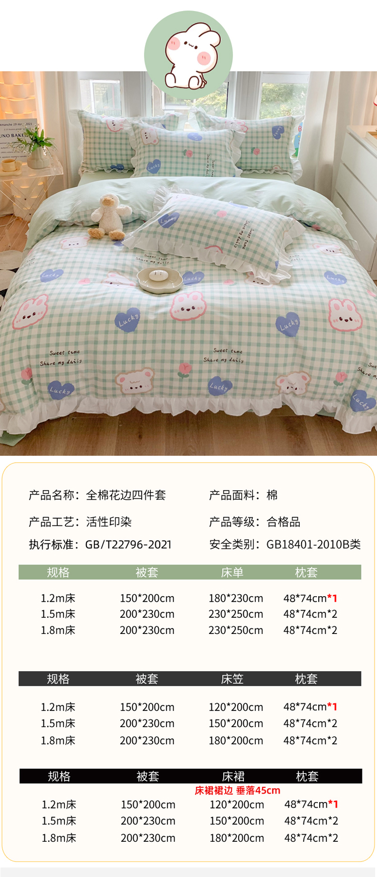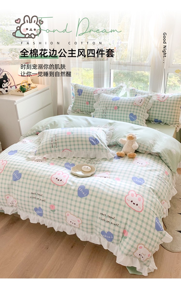 当前位置: 91家纺网 > 商品网购 > 床品套件 > 四件套 > 全棉普通四件套 > 2025新款公主风四件套全棉纯棉白花边被套床单款式三件套 兔宝宝