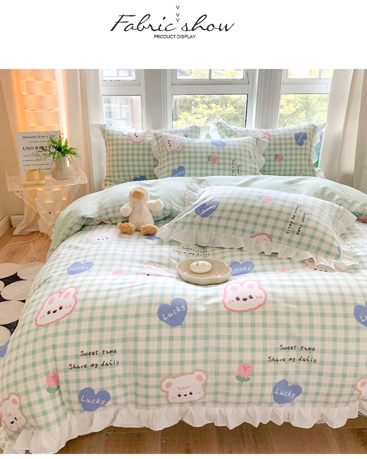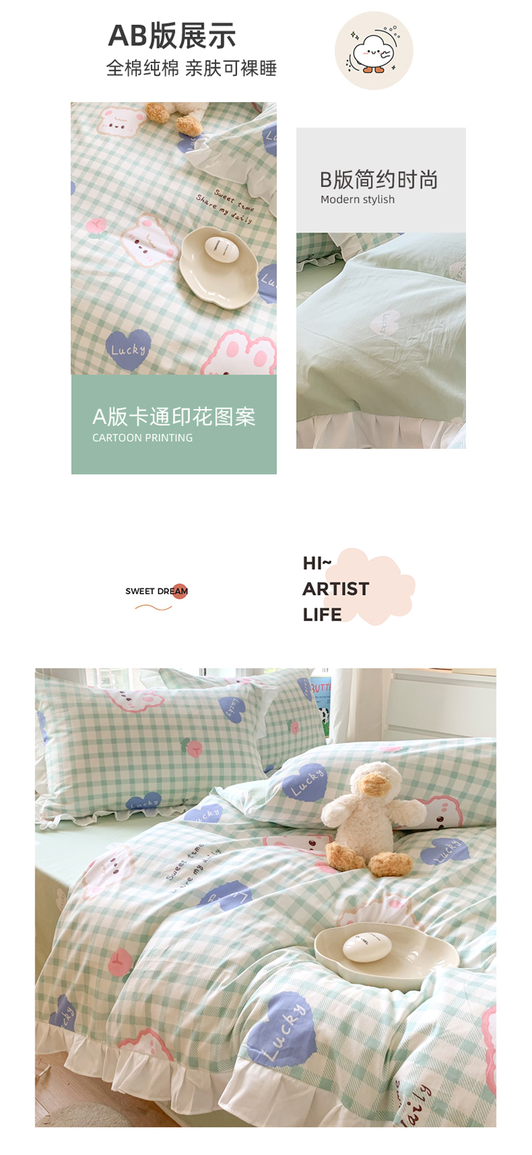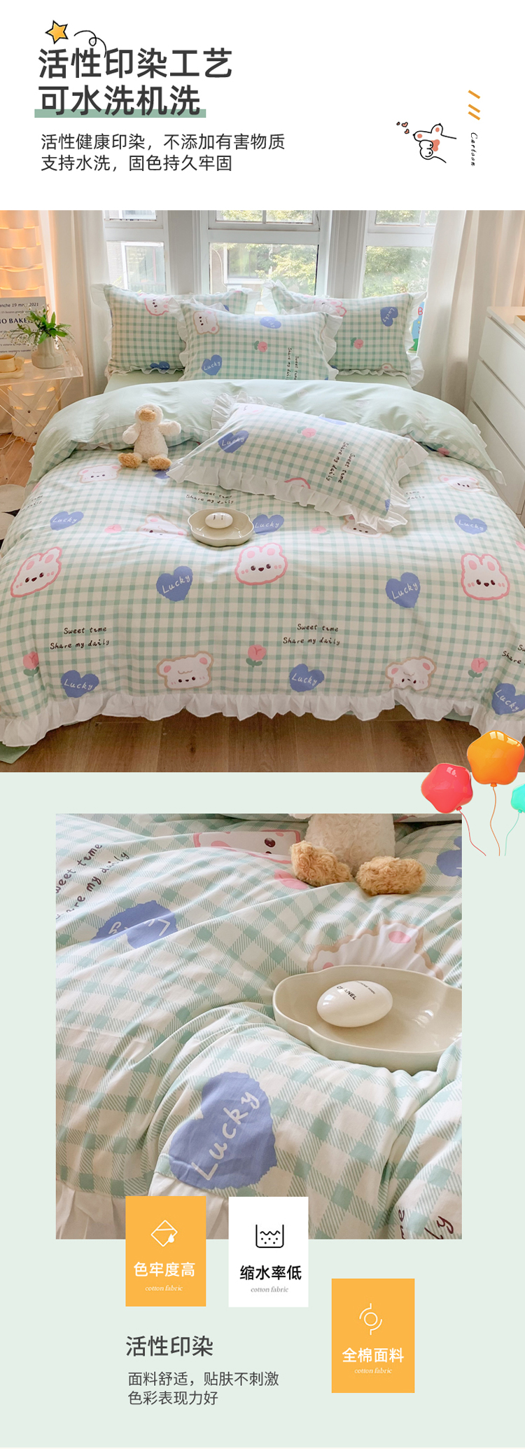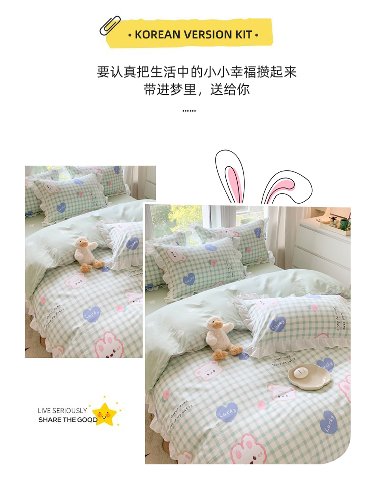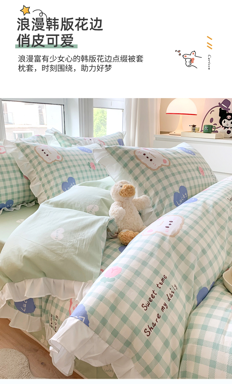当前位置: 91家纺网 > 商品网购 > 床品套件 > 四件套 > 全棉普通四件套 > 2025新款公主风四件套全棉纯棉白花边被套床单款式三件套 兔宝宝
