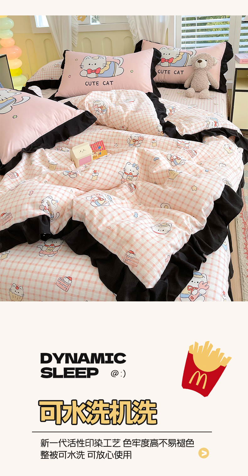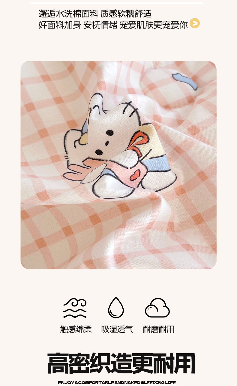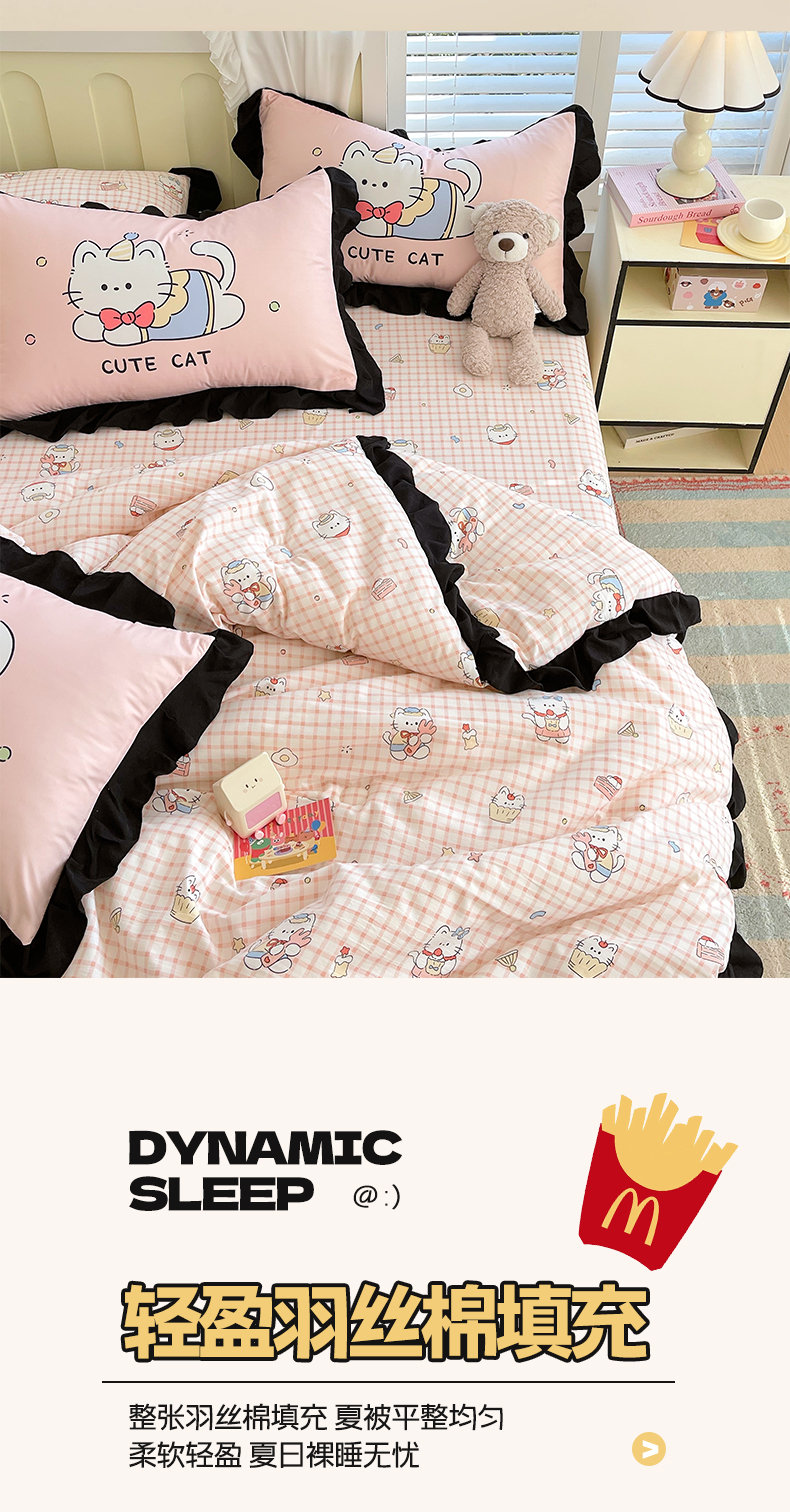 商品名称:慕希2025新款水洗棉萌趣夏被夏凉被空调被四件套 猫咪酱-粉