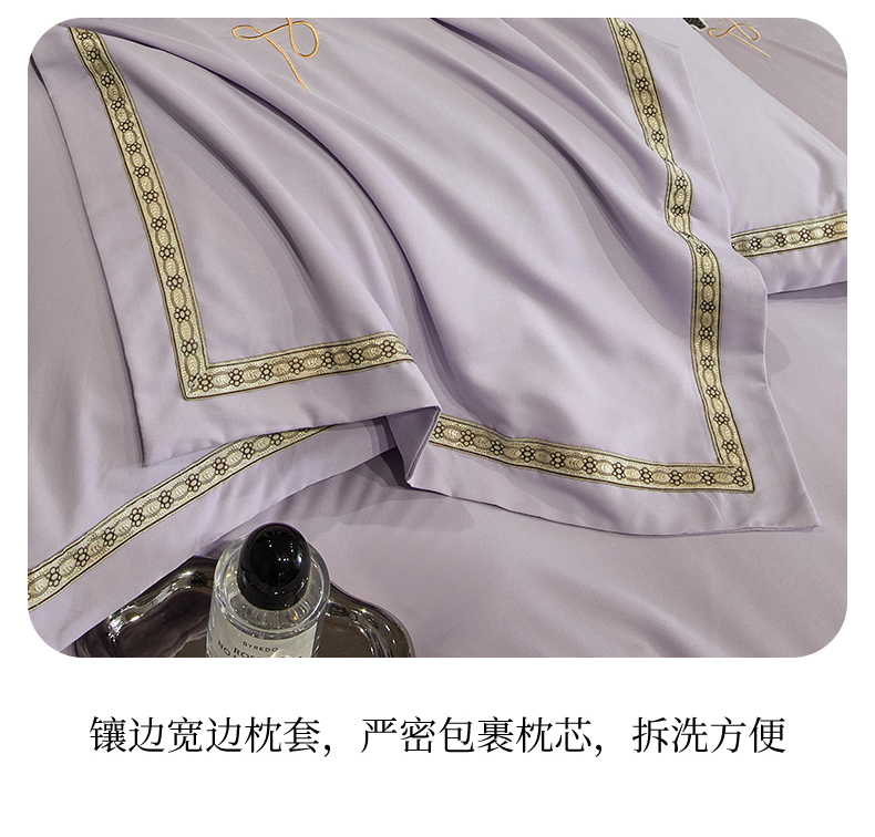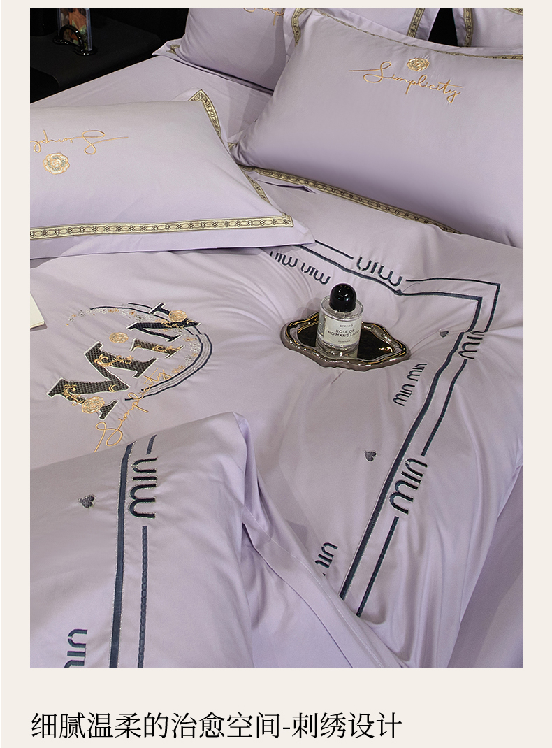 当前位置: 91家纺网 > 商品网购 > 床品套件 > 四件套 > 水洗棉四件套 > 佳宇轩 2025爆款水洗棉五彩刺绣四件套简约轻奢织带绣花床单床笠被罩4件套-简约时代 简约时代紫