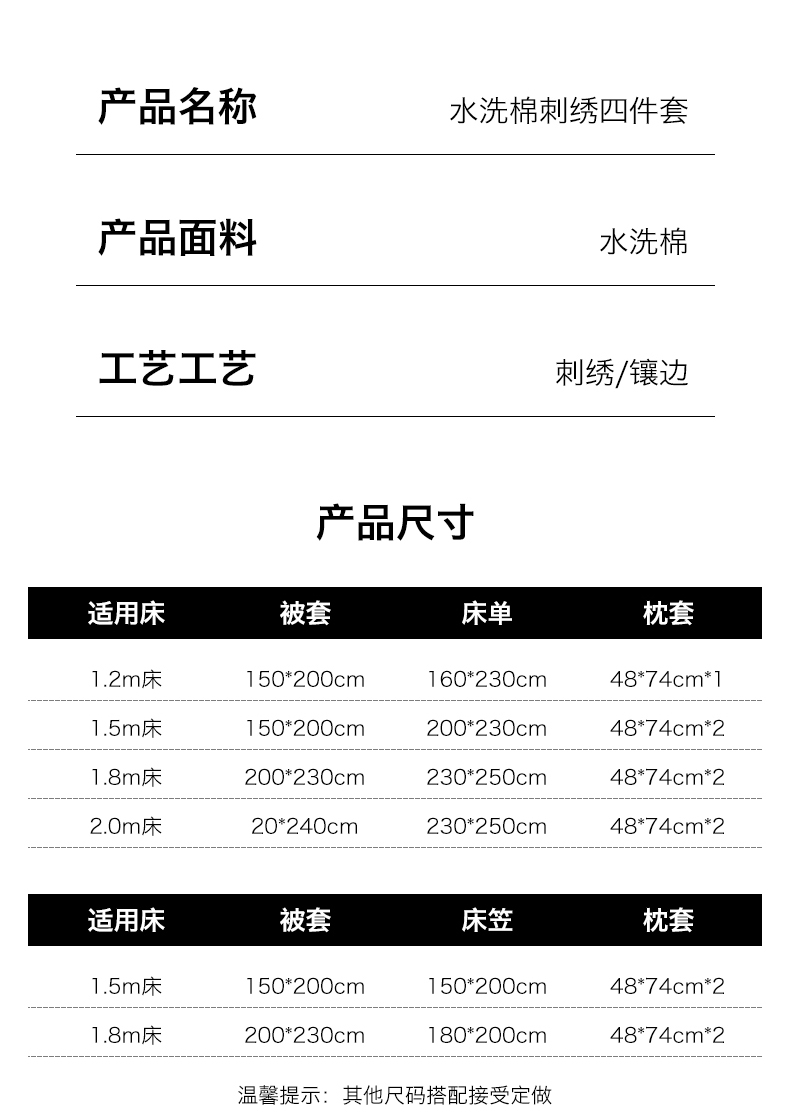 2.0m床单款四件套(不含包装)被罩220cm*240cm | ¥85.00 |