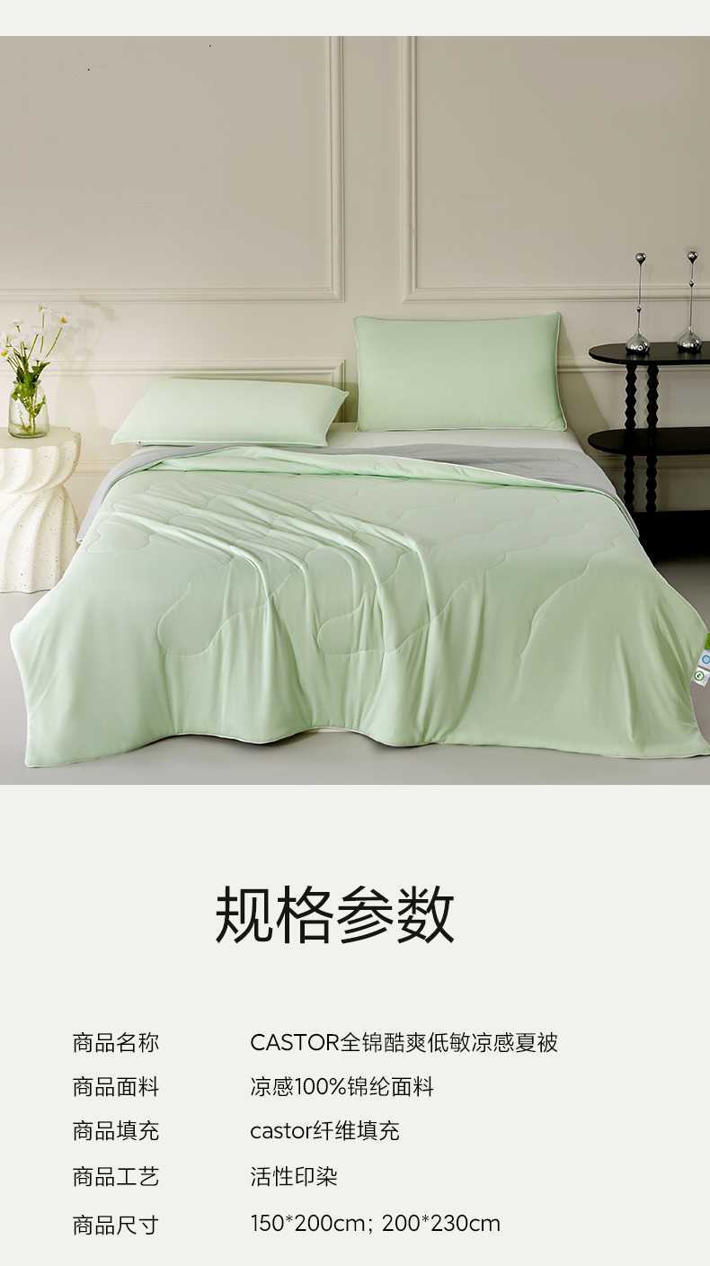 (总)巴宝路 2025新款castor全锦酷爽低敏凉感夏被夏凉被空调被,竹青绿,景天蓝,桃夭粉
