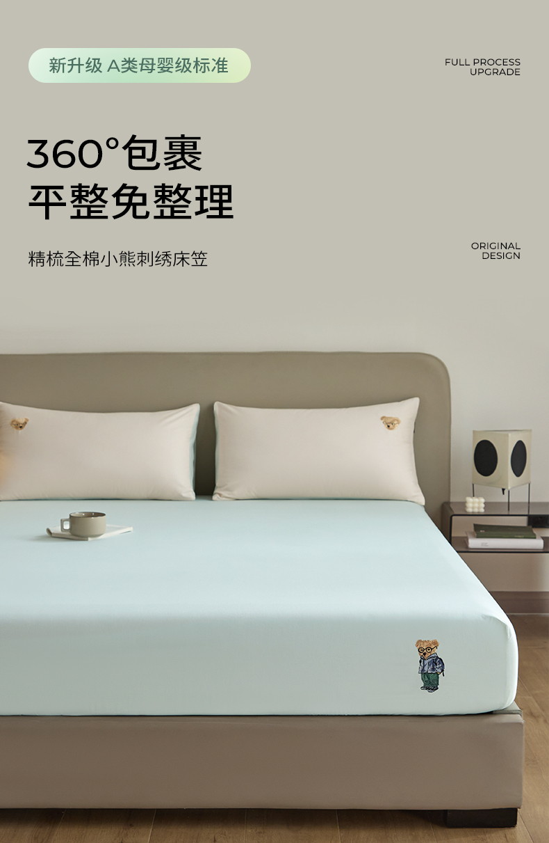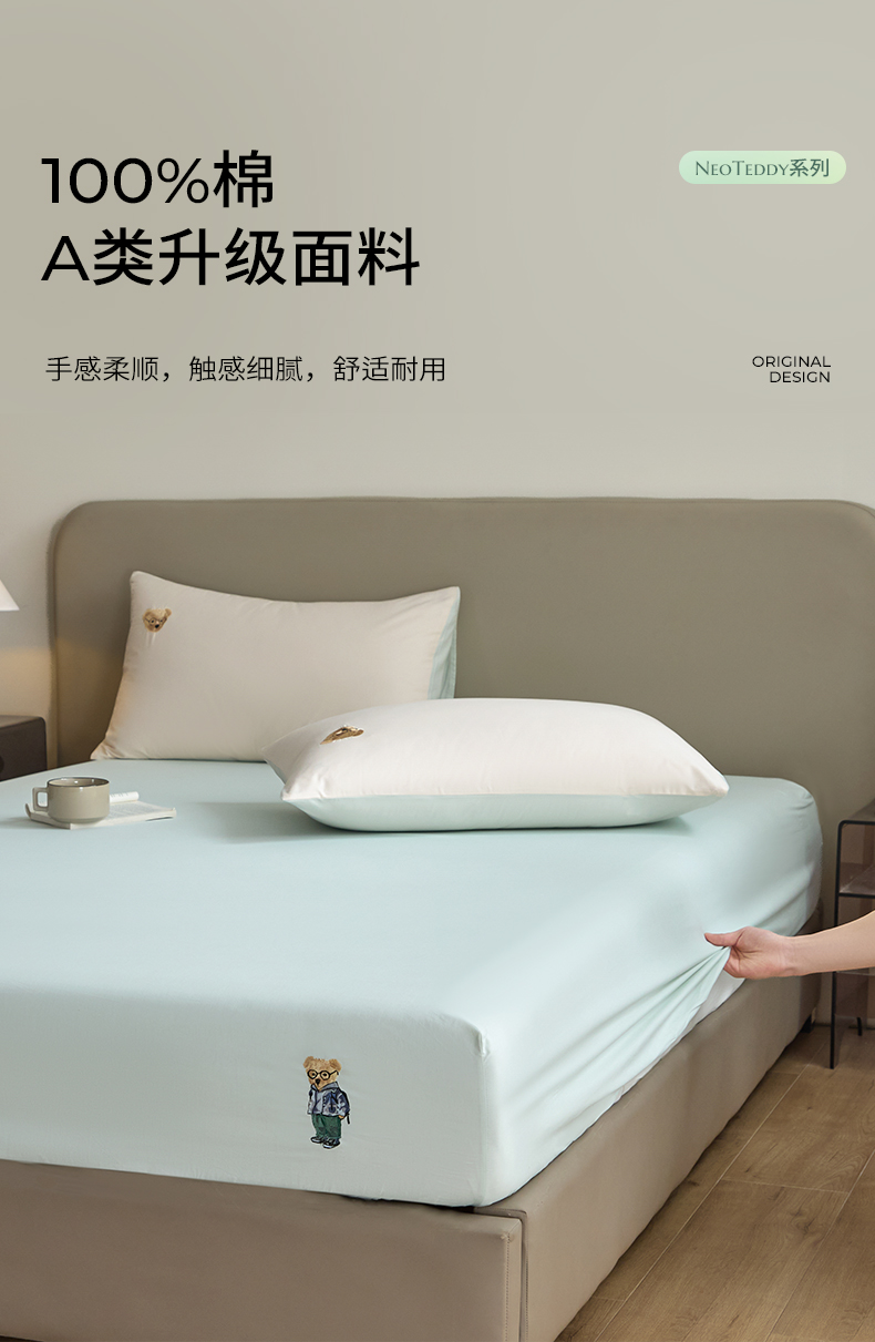 商品名称:(总)禾时 2025新款A类全棉卡通小熊刺绣床笠床套床罩床垫保护套