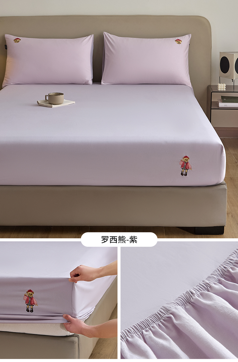 (总)禾时 2025新款A类全棉卡通小熊刺绣床笠床套床罩床垫保护套