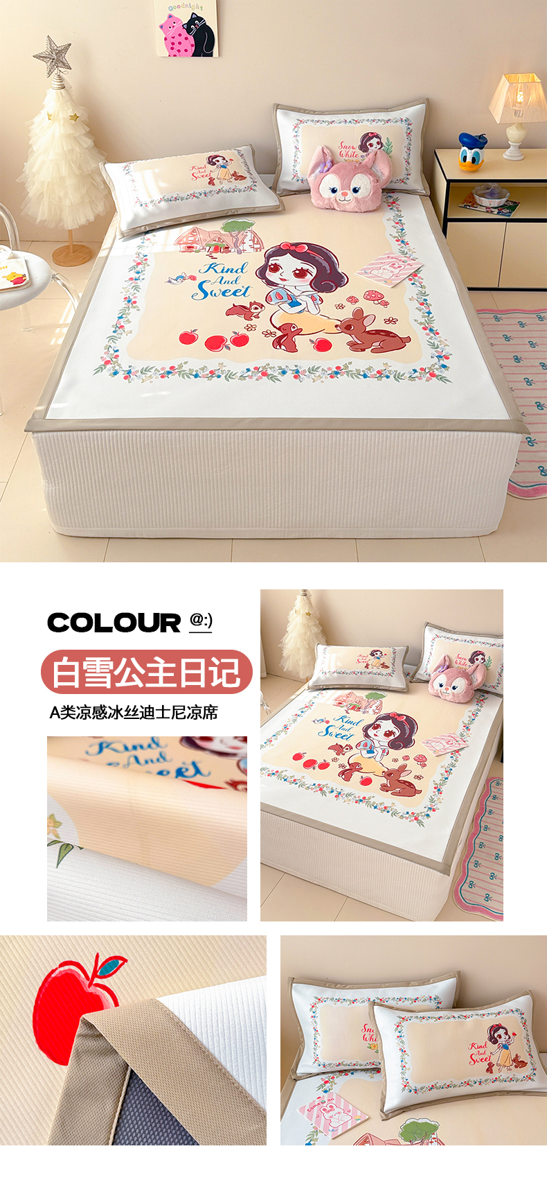 商品名称:典曼家纺 2025春夏新款A类凉感冰丝迪士尼凉席席子 白雪公主日记