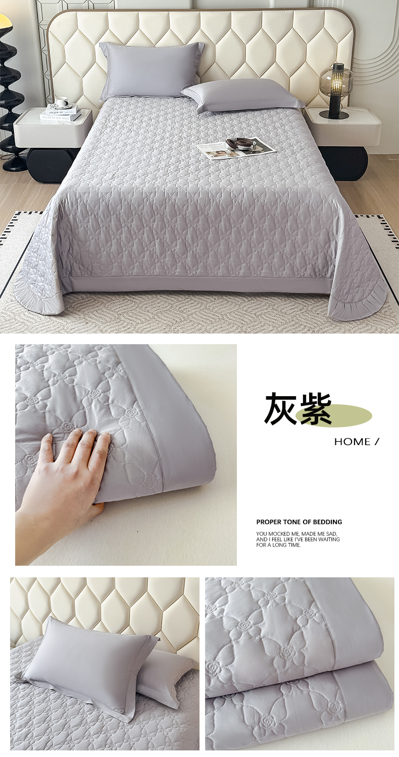 • 91家纺网 家纺一手货源 找家纺 好阁家纺 2025新款100支全棉蚕丝豆邦纤维床盖 灰紫