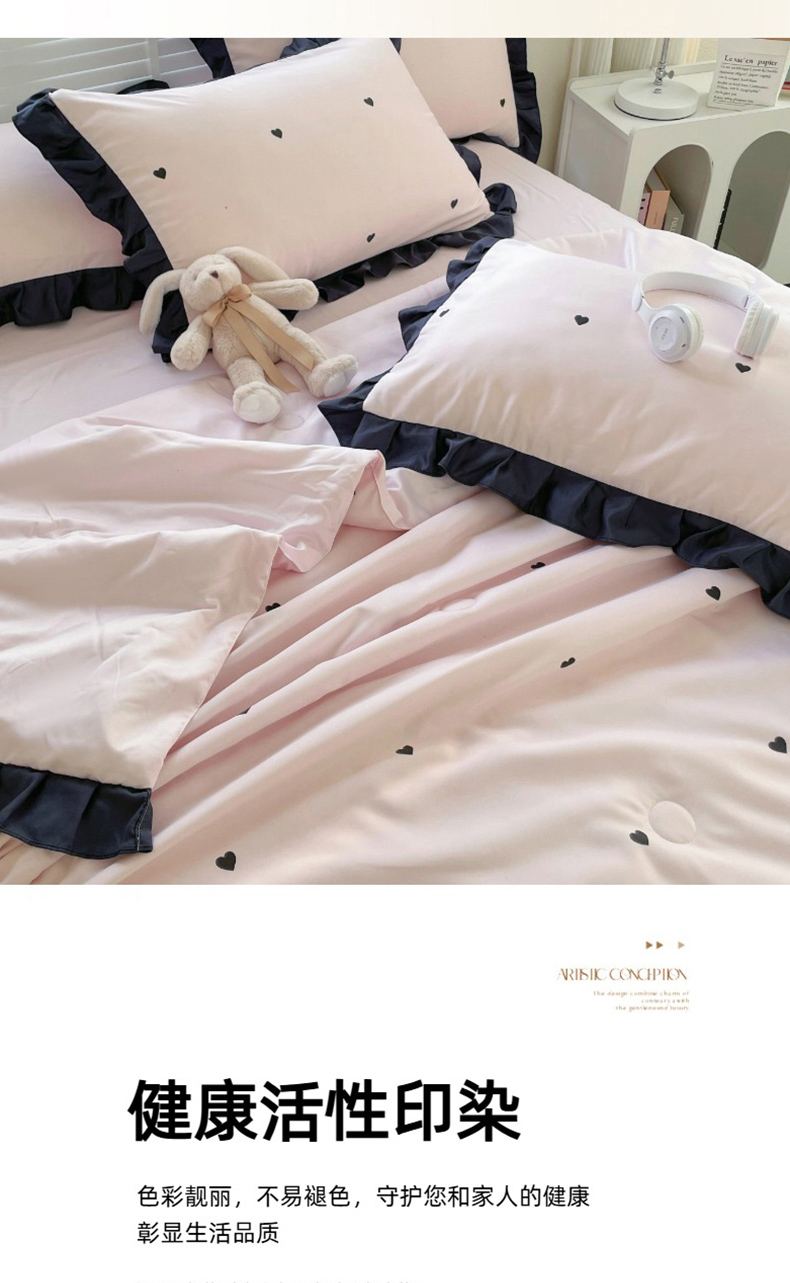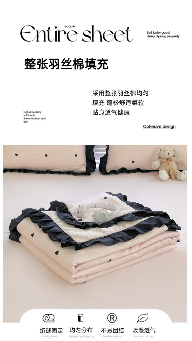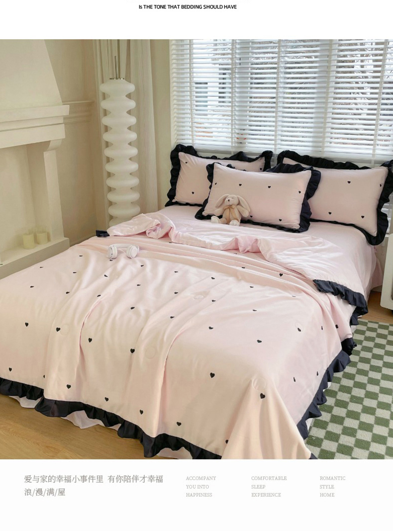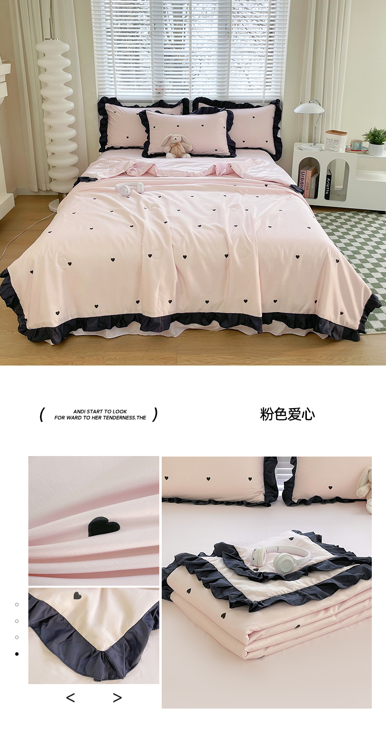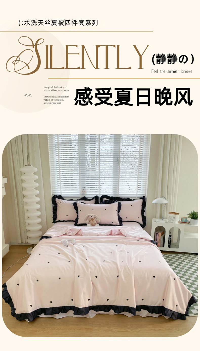 商品名称:绣女坊 2025新款水洗天丝夏被四件套 粉色爱心