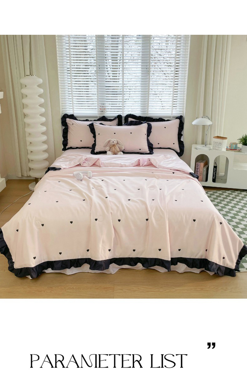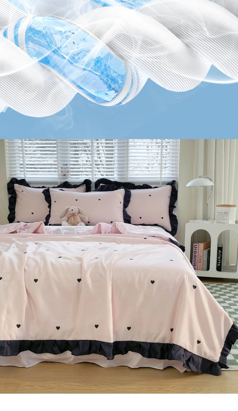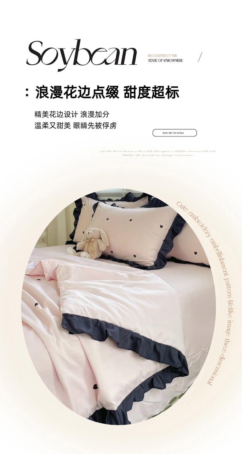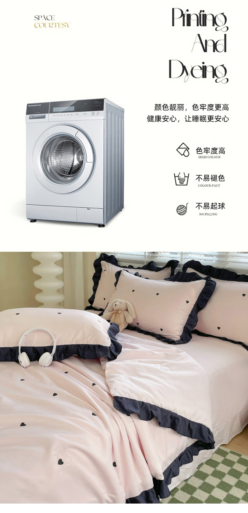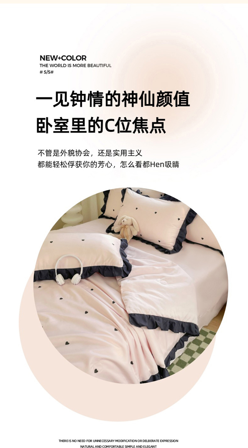 商品名称:绣女坊 2025新款水洗天丝夏被四件套 粉色爱心