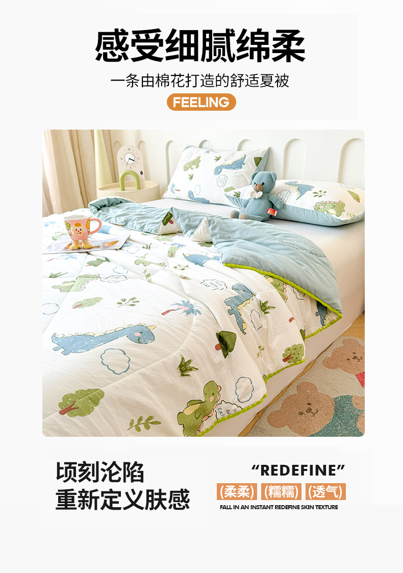 商品名称:(总)熙宴家纺 2025新款A类水洗双层纱100%新疆棉花印花夏被空调被夏凉被