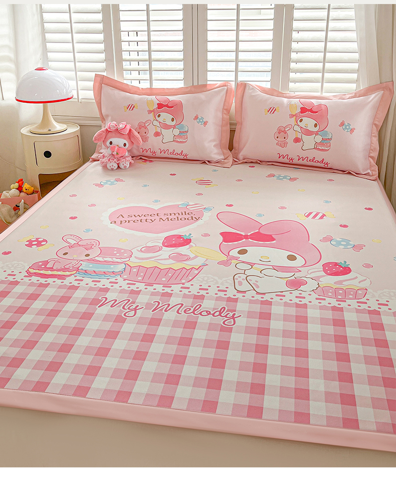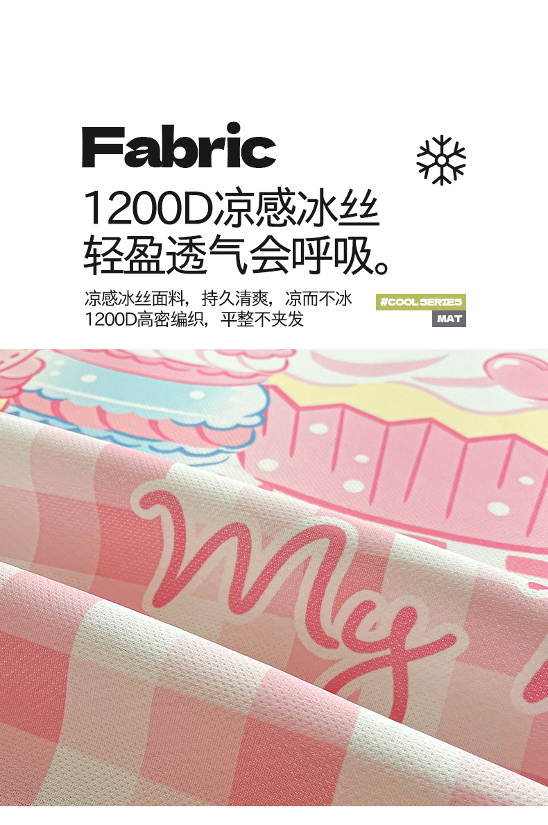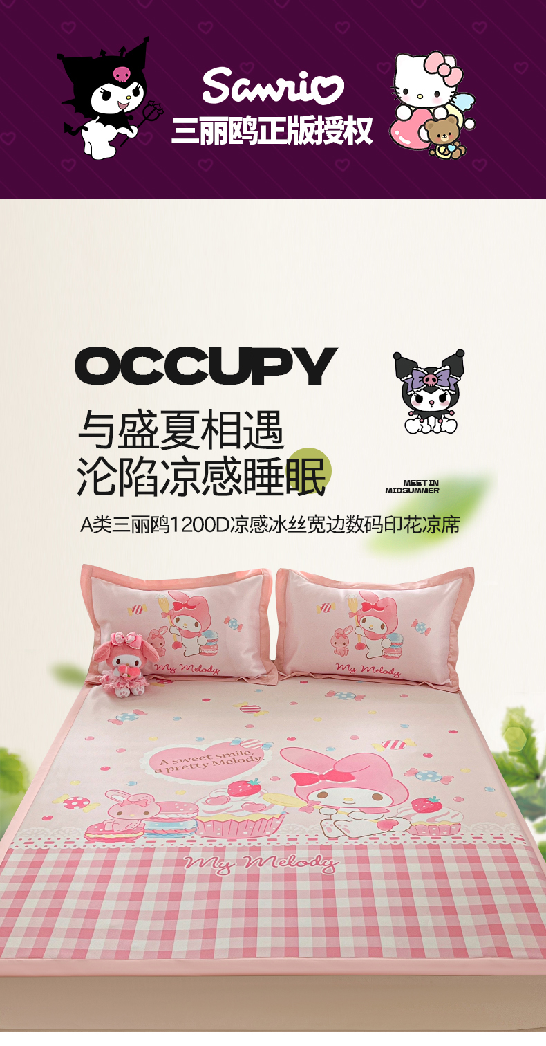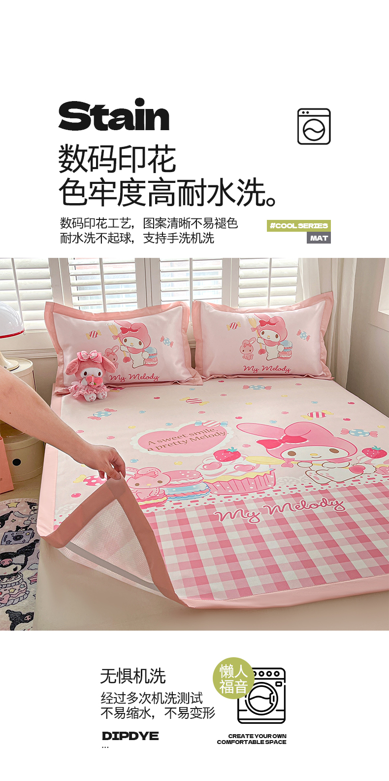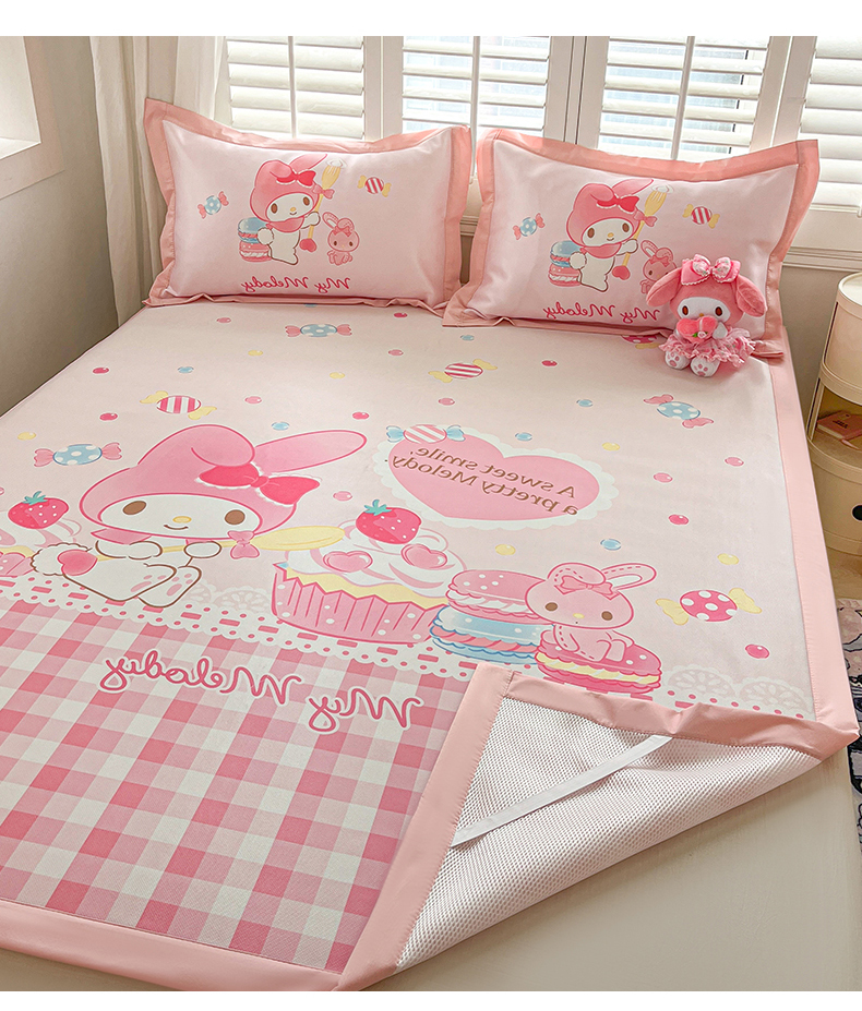 商品名称:桃子家居 2025新款A类三丽鸥授权数码印花中分子1200D凉感冰丝宽边凉感软席席子 冰丝席-蛋糕美乐蒂