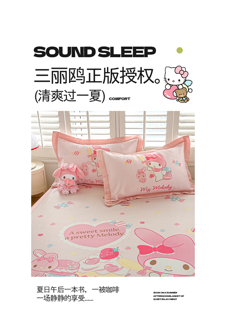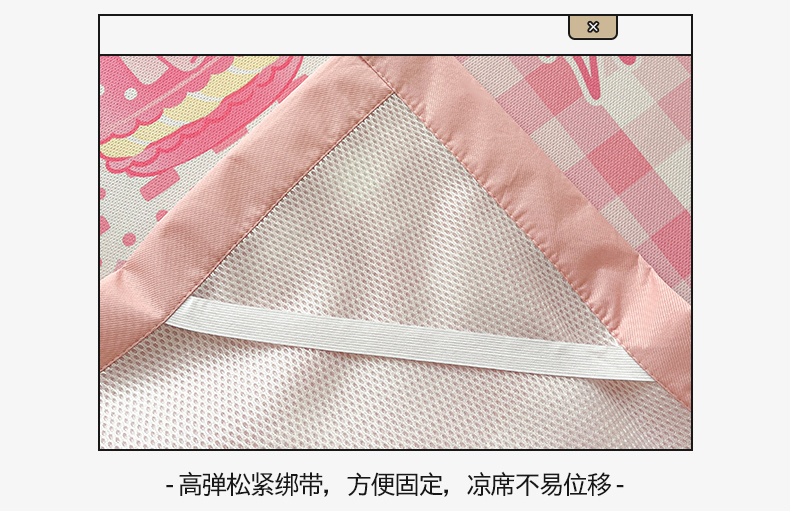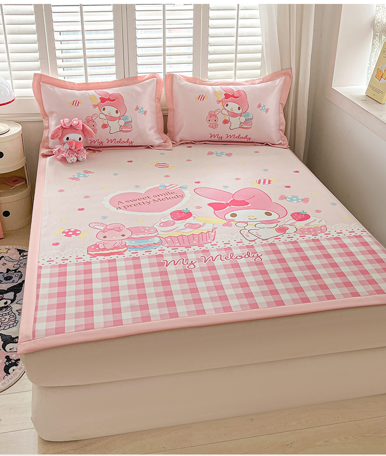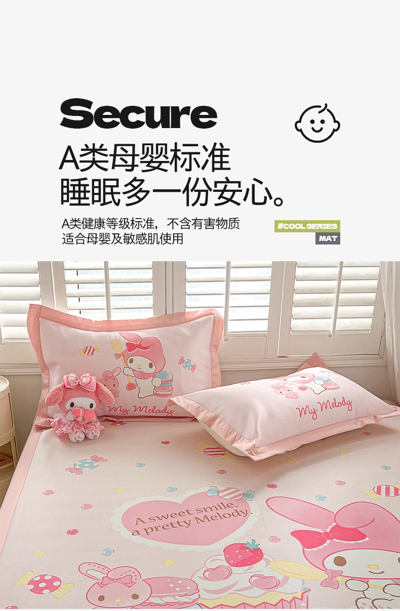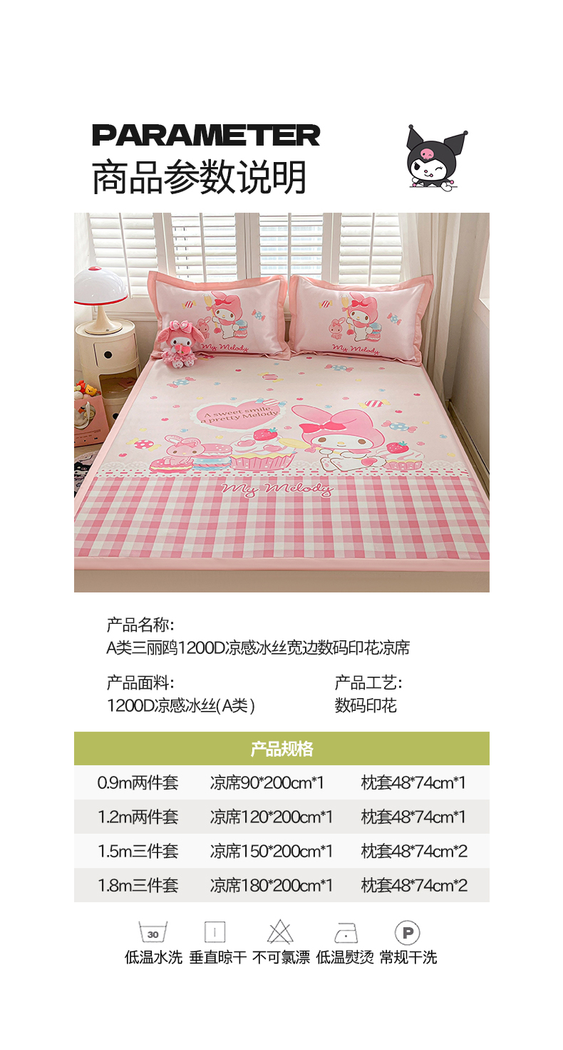 商品名称:桃子家居 2025新款A类三丽鸥授权数码印花中分子1200D凉感冰丝宽边凉感软席席子 冰丝席-蛋糕美乐蒂