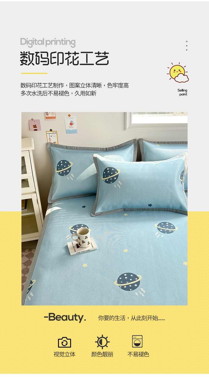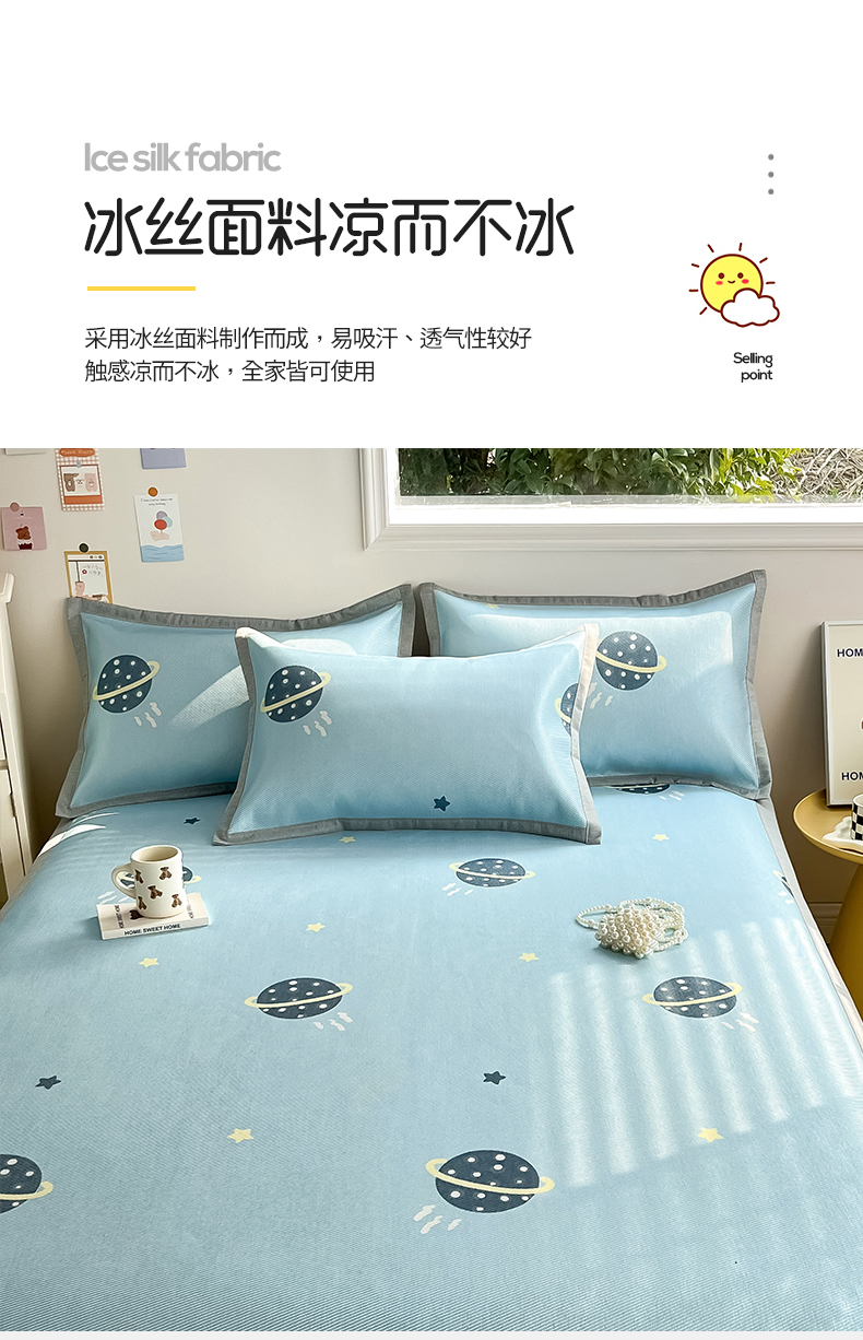 商品名称:典曼家纺 2025春夏新款250D冰丝宽边圆网冰丝凉席席子 探索星球