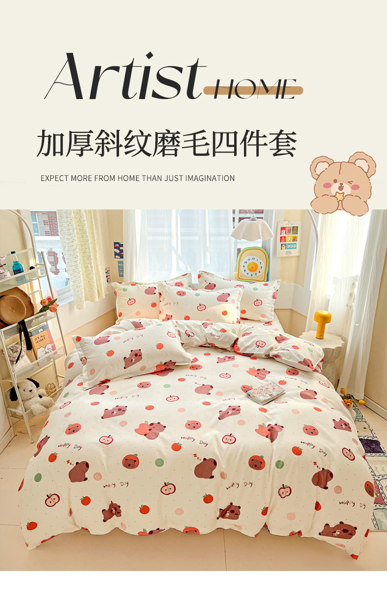当前位置: 91家纺网 > 商品网购 > 床品套件 > 四件套 > 其它四件套 > KT猫直营店 2025新款卡通加厚斜纹磨毛植物羊绒四件套 卡皮巴拉