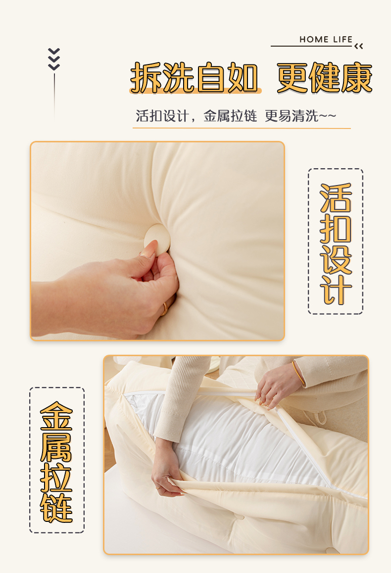 (总)碧尔家居 2025新款轻奢床上靠垫卧室床头靠枕银灰榻榻米靠背长条飘窗防撞软垫可拆洗,米黄,乳白,银灰
