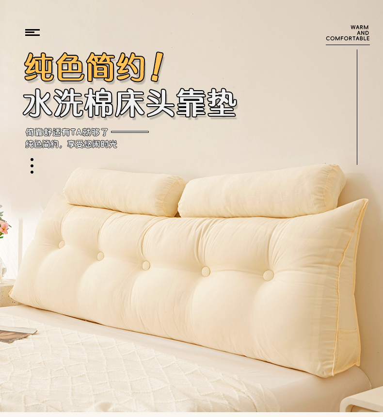 (总)碧尔家居 2025新款榻榻米床头靠枕大靠背卧室护腰靠垫可拆洗沙发双人软包三角玉米绒带头枕,米白,牛仔蓝,银灰