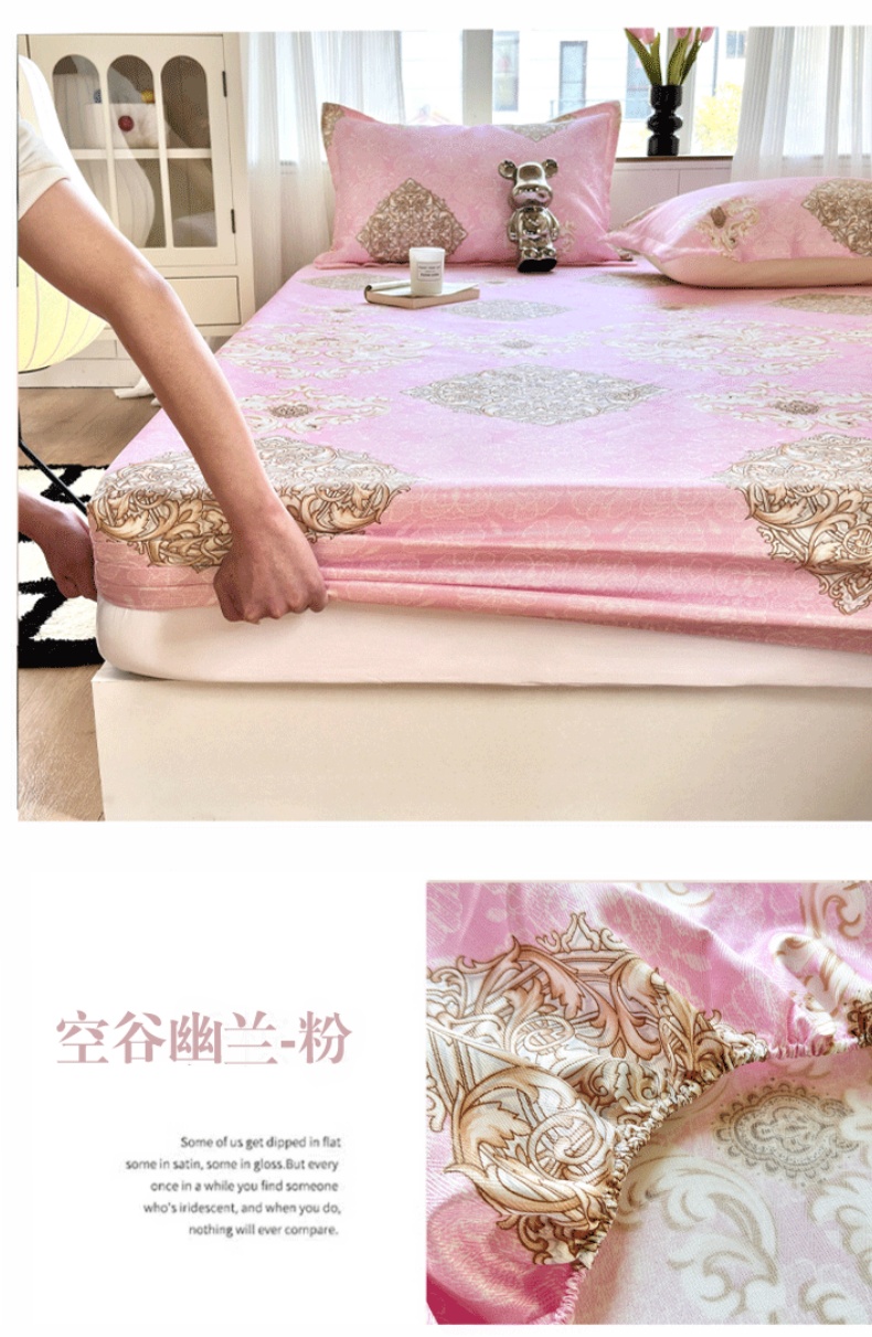 乐居家纺 2025新款亲肤舒适活性印染水洗冰丝床笠 空谷幽兰-粉