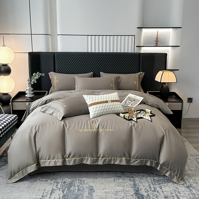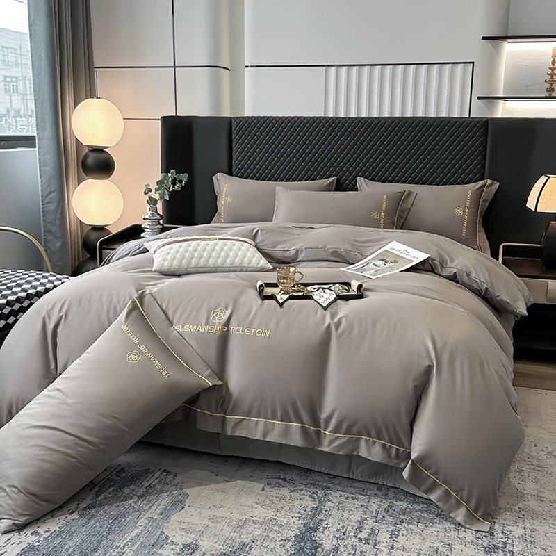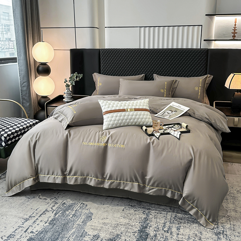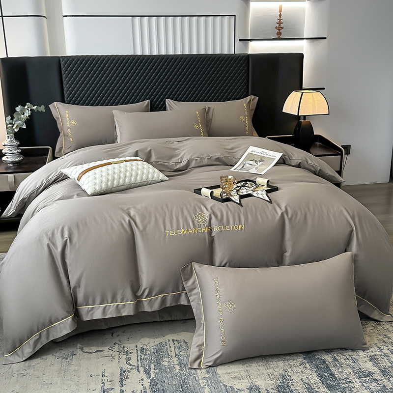 当前位置: 91家纺网 > 商品网购 > 床品套件 > 四件套 > 全棉普通四件套 > 宇彬家纺 2025直播新款13374全棉纯棉母婴级压线一字绣纯色刺绣四件套全棉纯棉贡缎新疆长绒字母款铂金系列 茶花-绅土灰