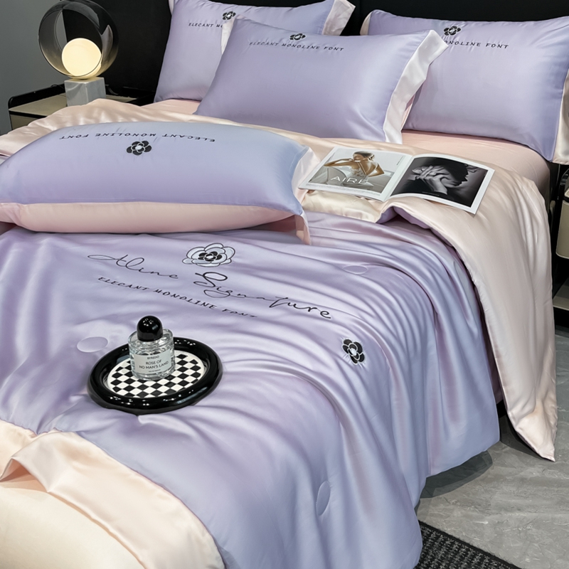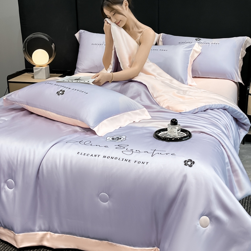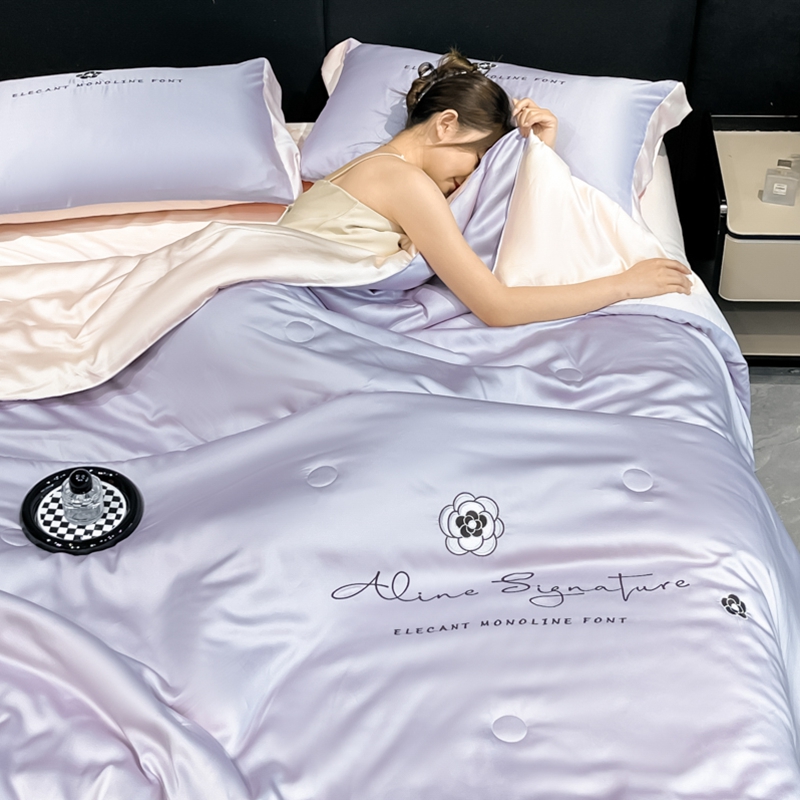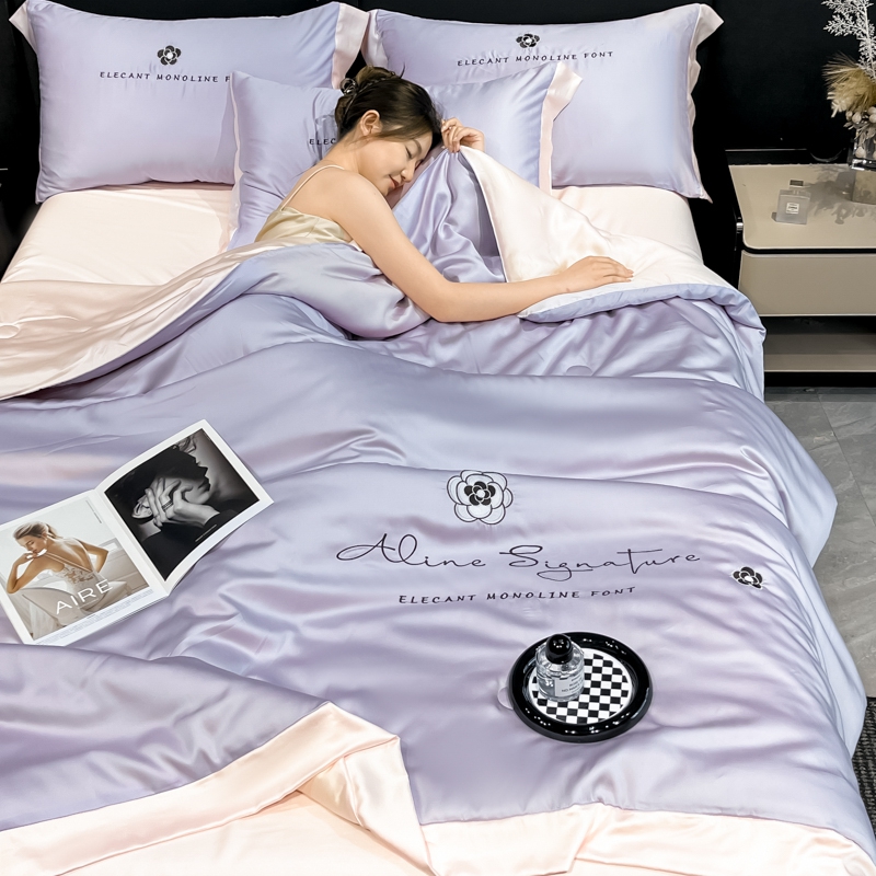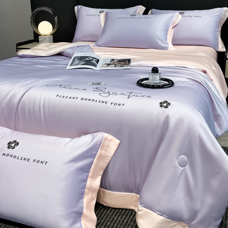 当前位置: 91家纺网 > 商品网购 > 床品套件 > 四件套 > 夏被四件套 > 仔仔熊 2025新款水洗真丝夏凉被四件套-春暖花开系列 春暖花开 星黛紫-奶油粉